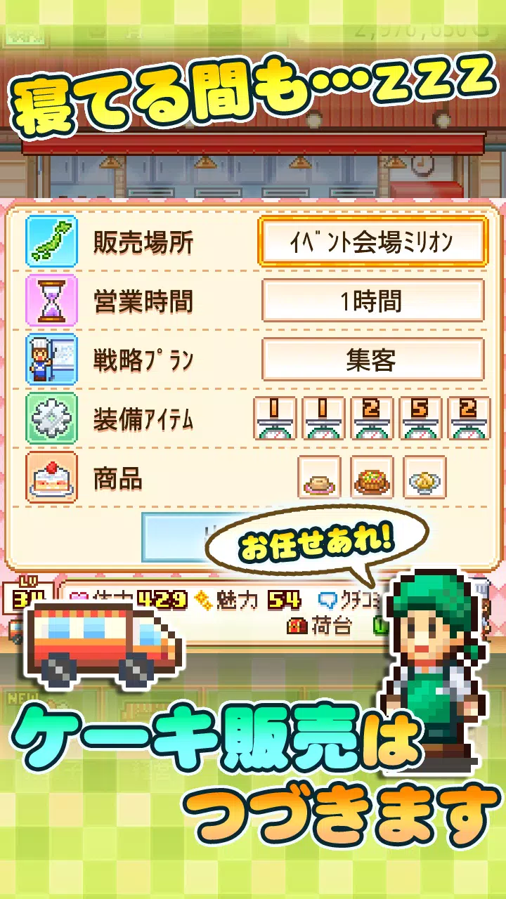 配备了让全国各地的朋友都可以访问商店的通信功能,以及即使在您睡觉时也会自动继续蛋糕销售的小贩模式!