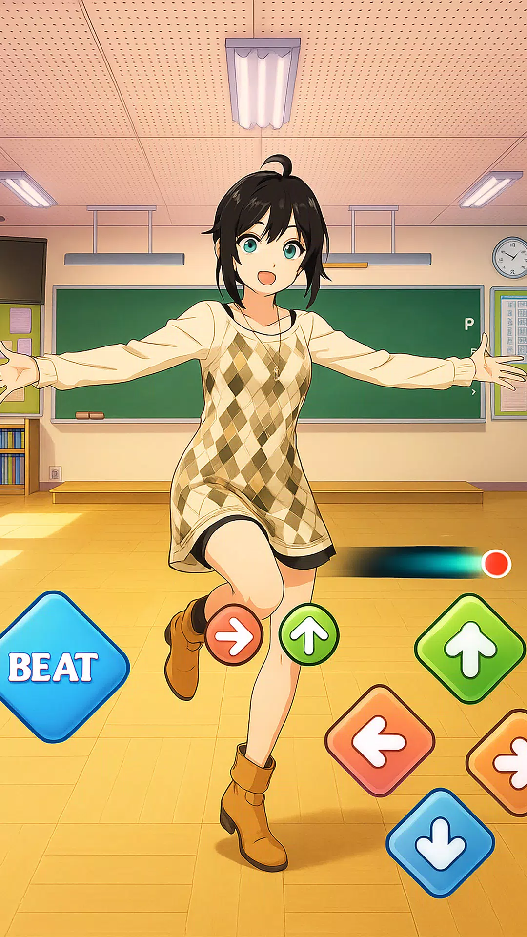 点击地板,看着你的女朋友自由走动!探索不同的场景: