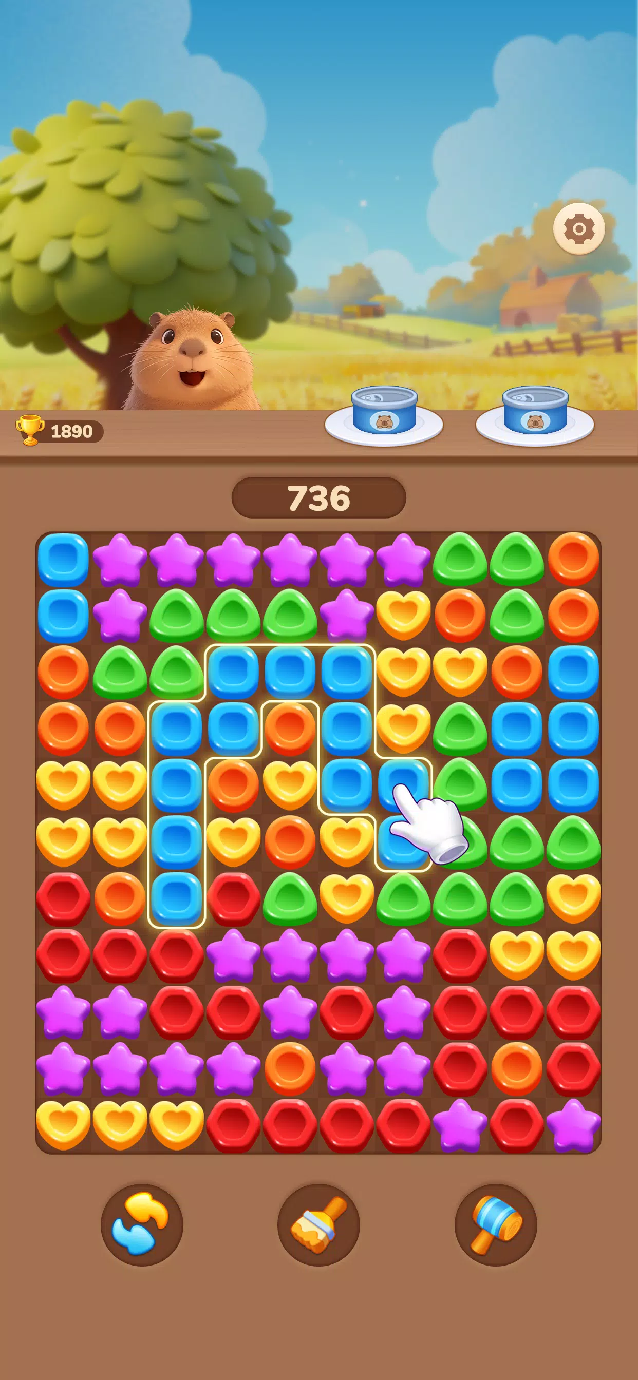 加入《Capy Crush》,开启一段轻松愉快的冒险之旅,匹配方块,运用你的颜色匹配技巧,解决所有令人上瘾的谜题。