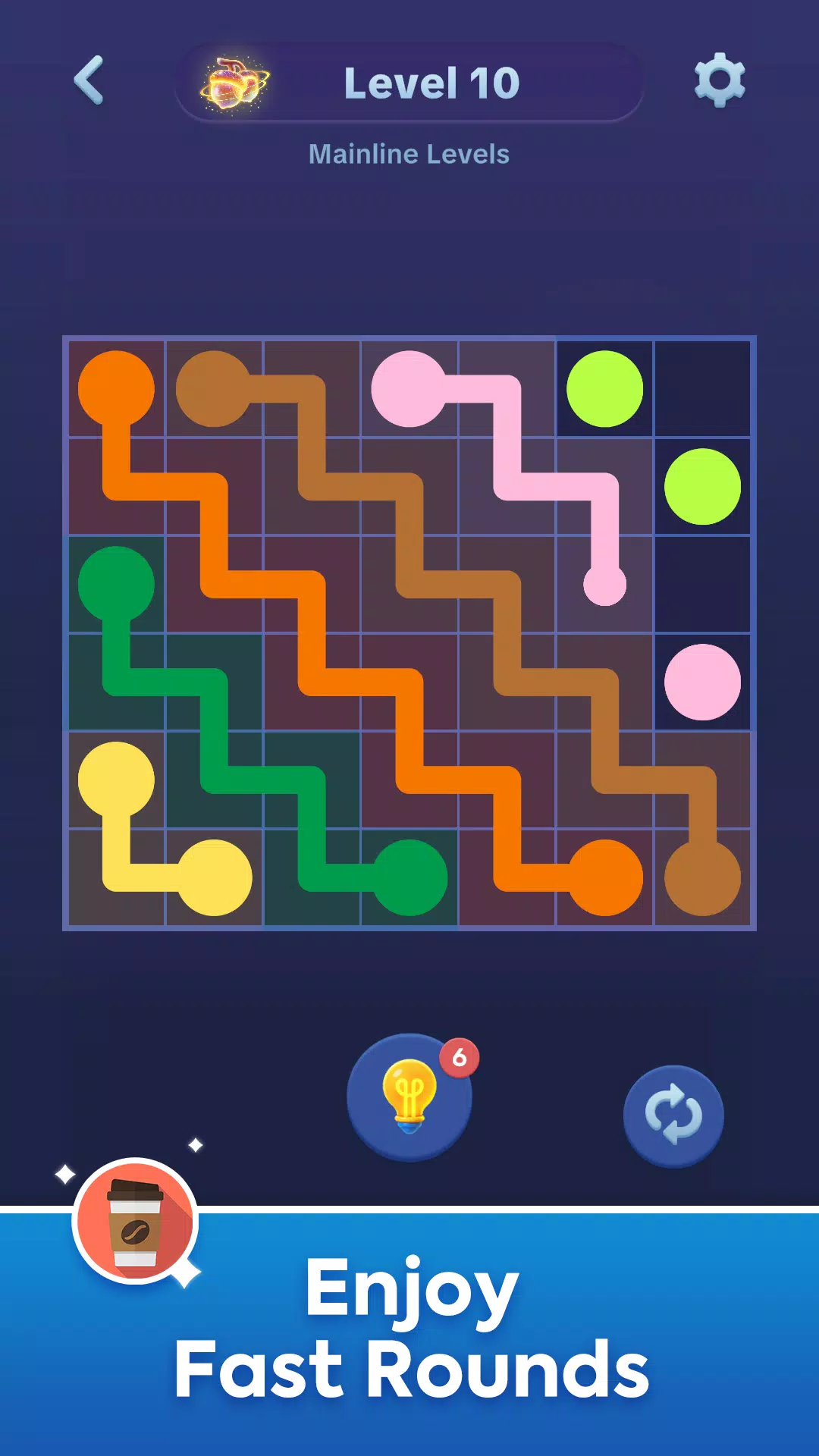 您的目标很简单:用不相交的链接连接相同的节点。匹配所有颜色并覆盖整个拼图板即可获胜。