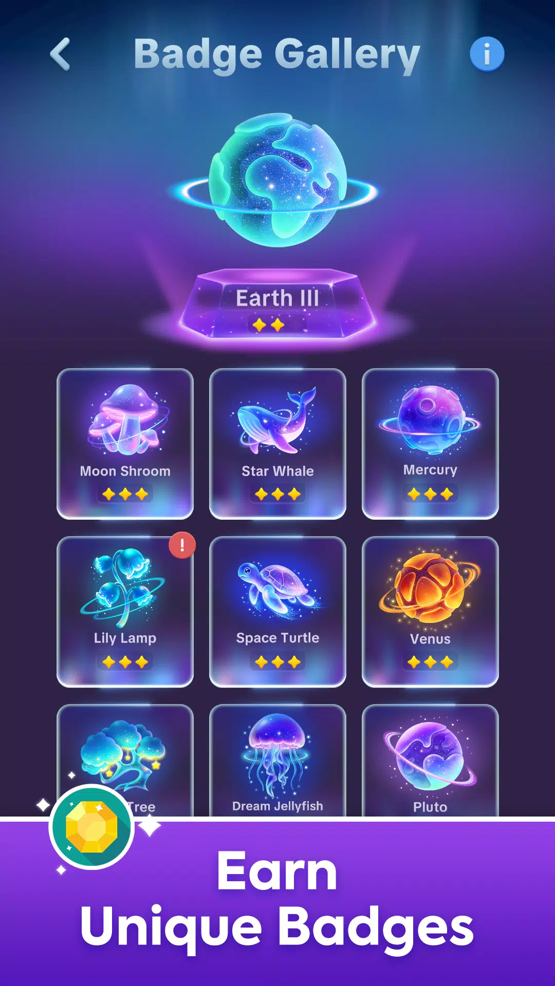 丰富多样的主题:发现以行星、动物和植物为主题的图标。您能否获得所有成就? 🌌 沉浸式氛围