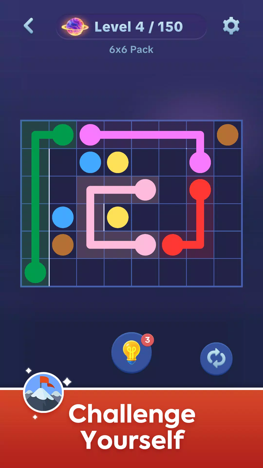 精通难:随着拼图板的增大,挑战也会随之增加。您能否在不交叉连接的情况下完成游戏?