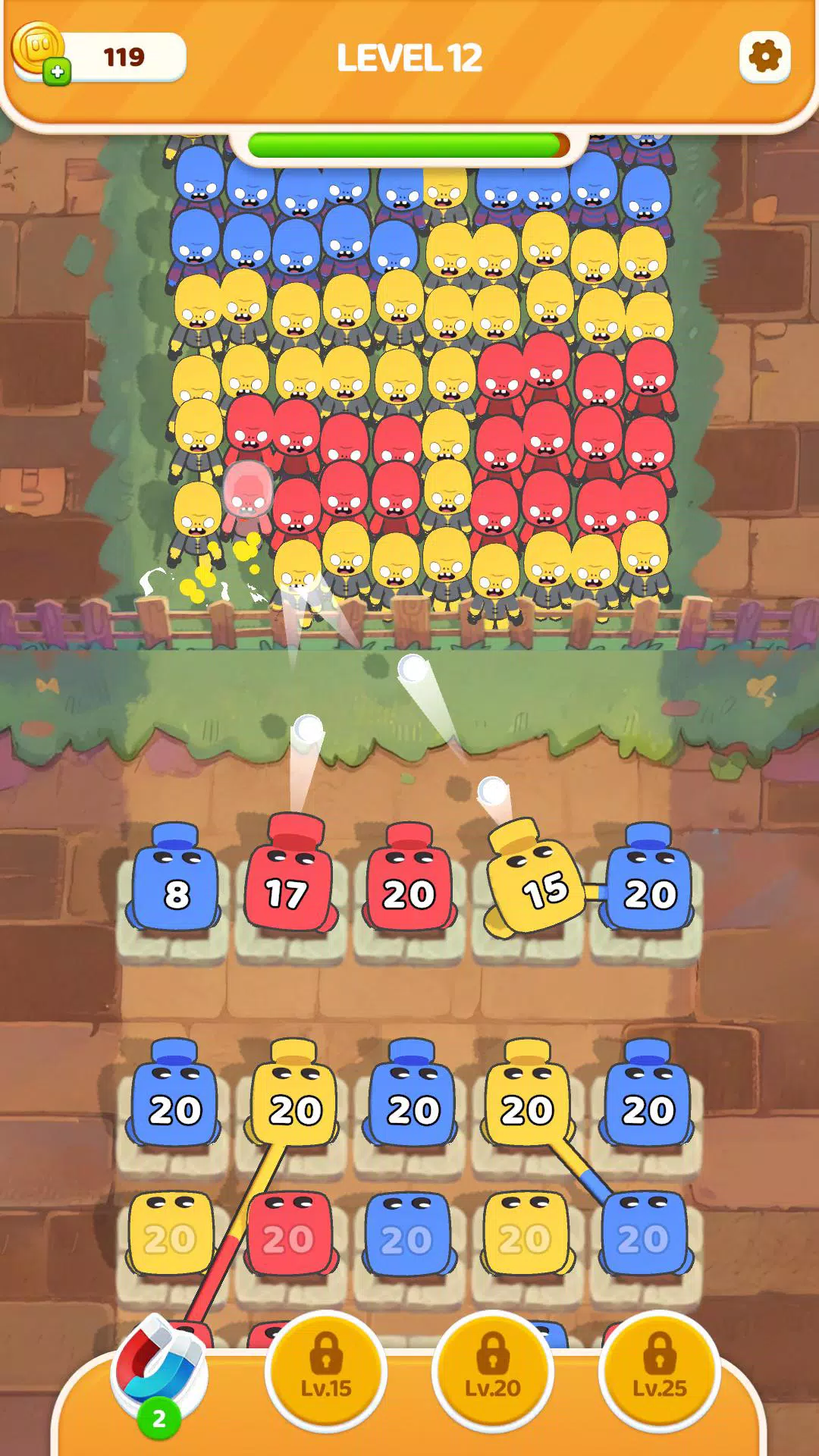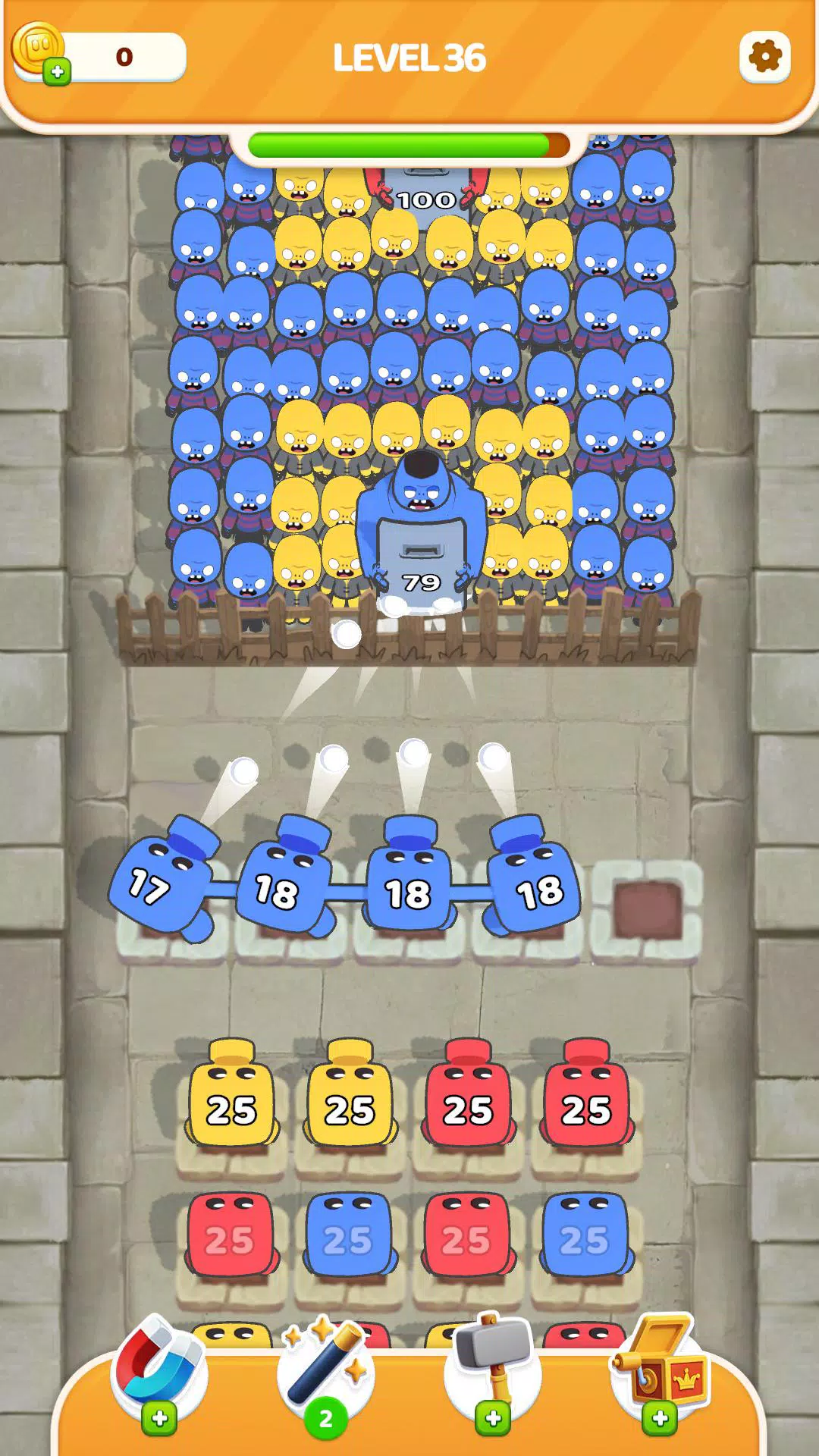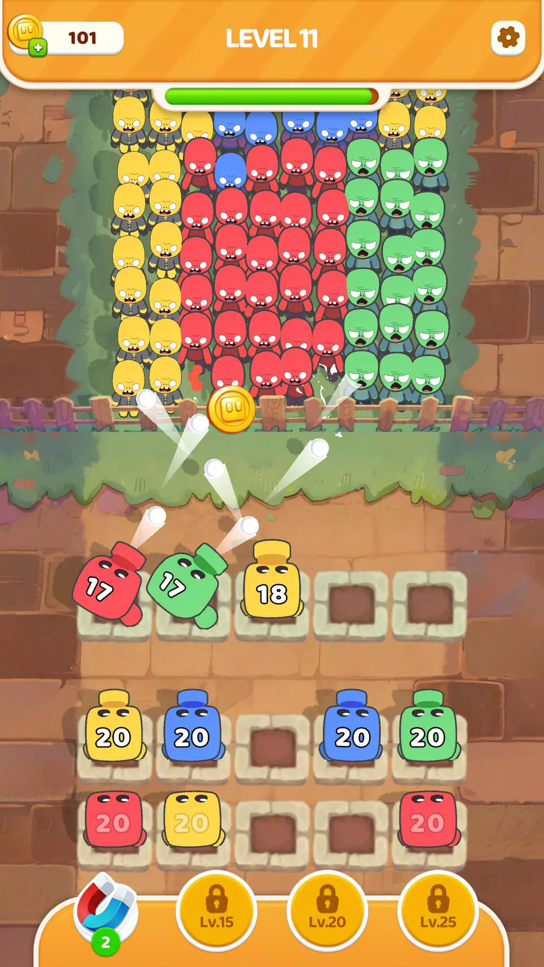 选择相同颜色的弓箭手消灭僵尸
