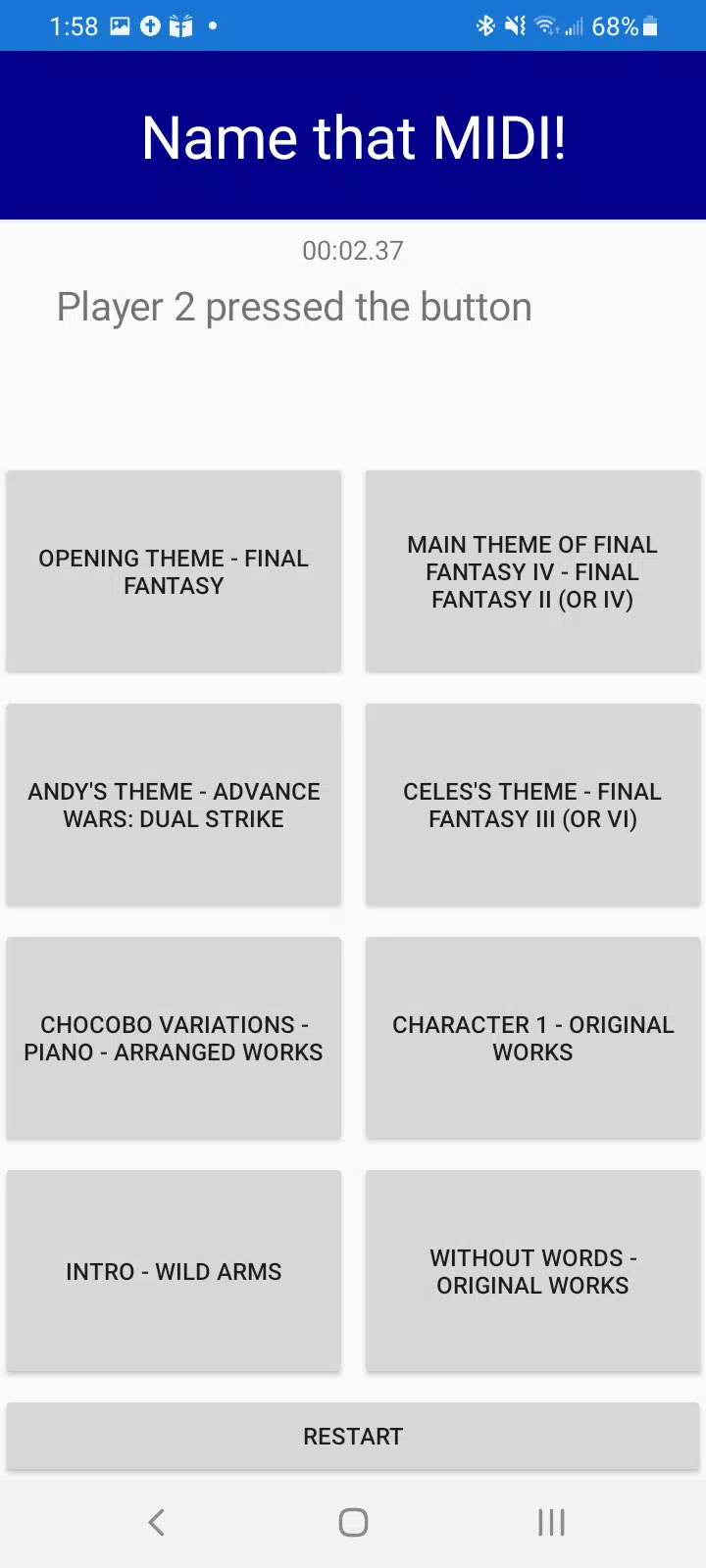 一台设备最多可与 4 名玩家一起游玩。尝试在好友面前说出 MIDI 音乐的名称。如果是单人游玩,则根据说出音乐名称所需的时间计算积分。音乐已分类,您可以选择在特定类别中游玩,也可以选择在全部类别中游玩。