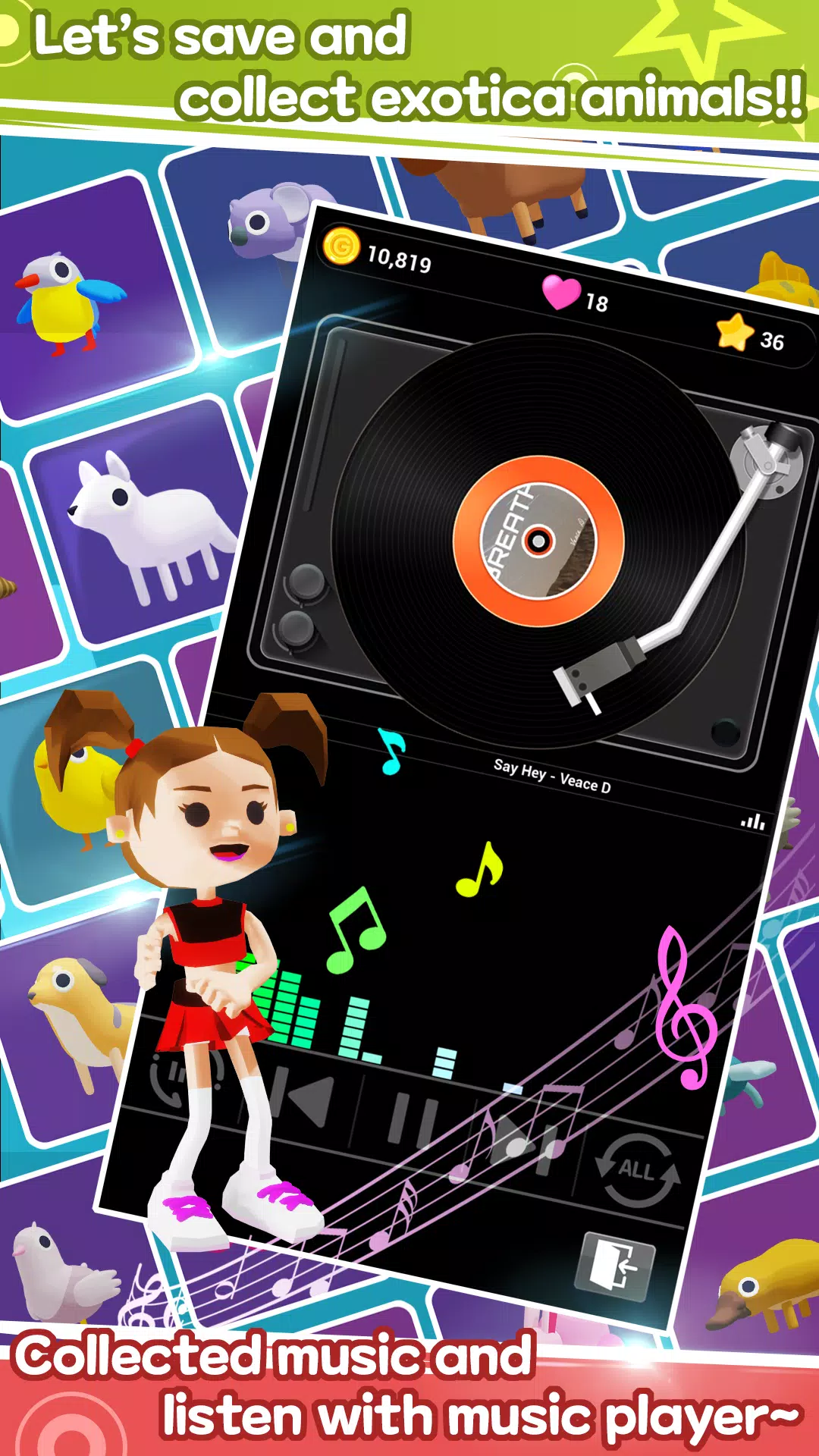 收集各种各样的可爱动物,看着它们随着音乐翩翩起舞吧!