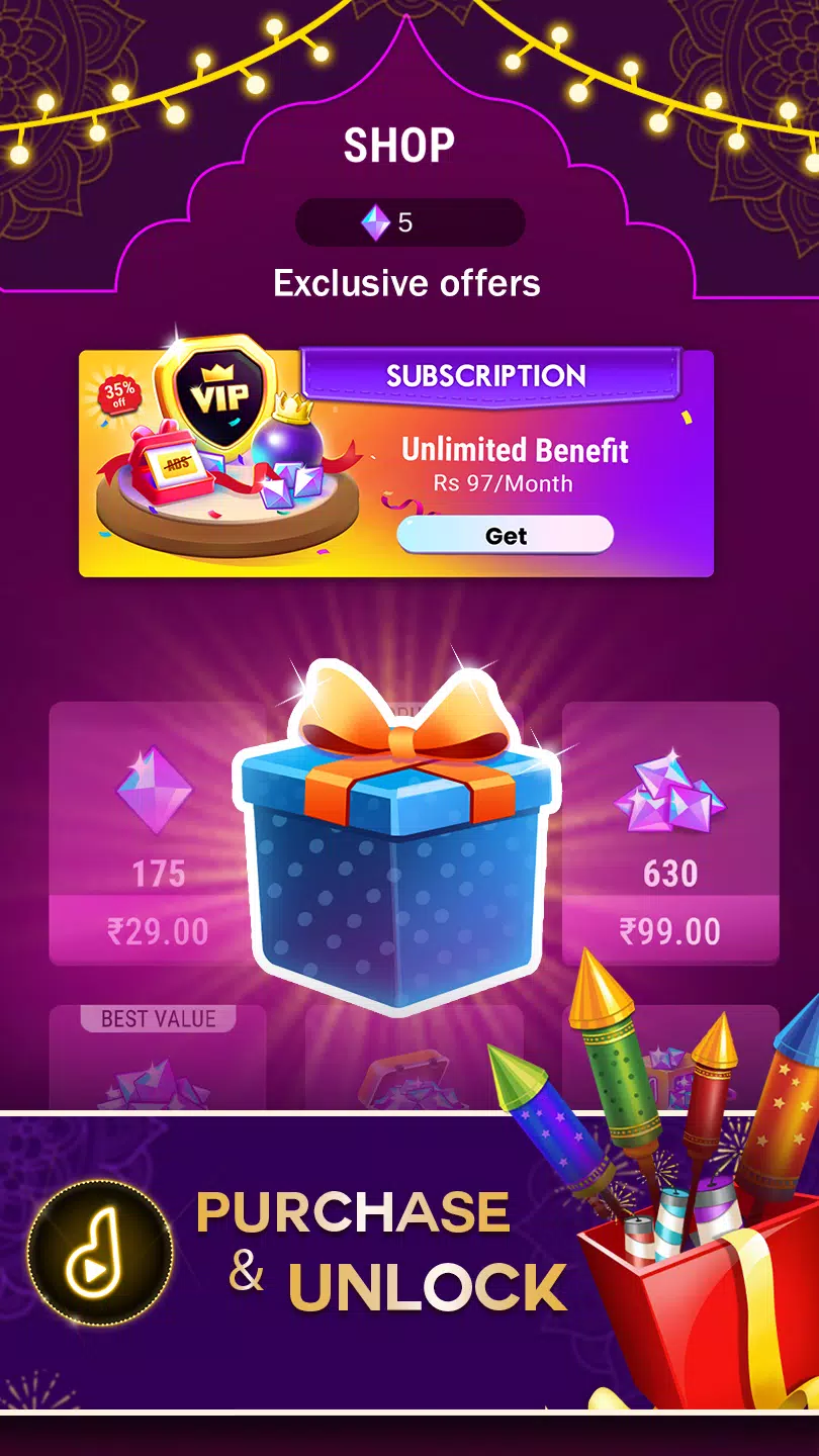 宝石:通过游戏、成就和免费礼物赚取宝石,解锁歌曲及更多内容。