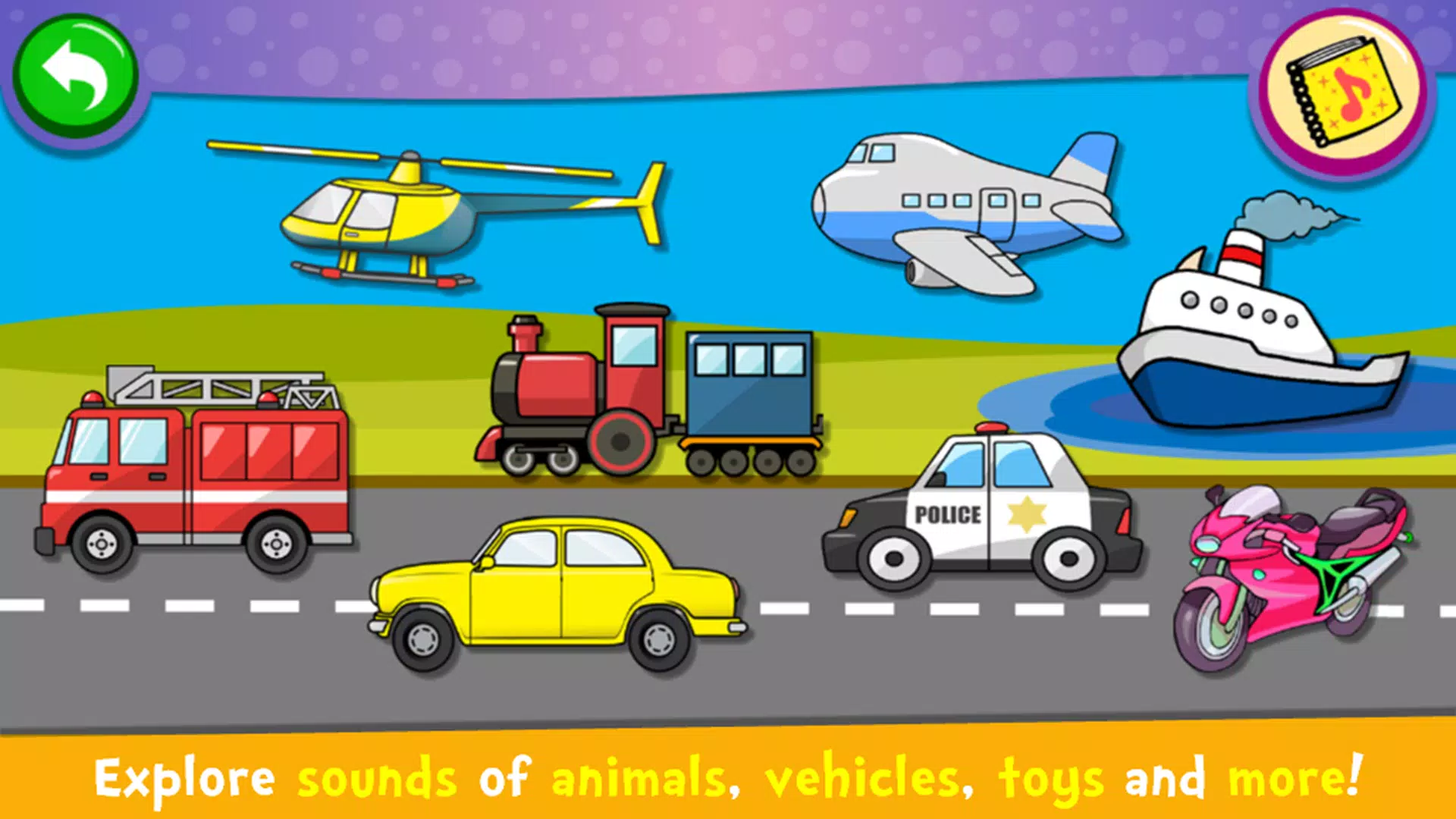 每个人都可以玩耍并享受探索不同声音(动物,交通工具,喜剧声音等)的乐趣,学习用不同的语言发音颜色,标志,数字,几何图形和字母的声音!