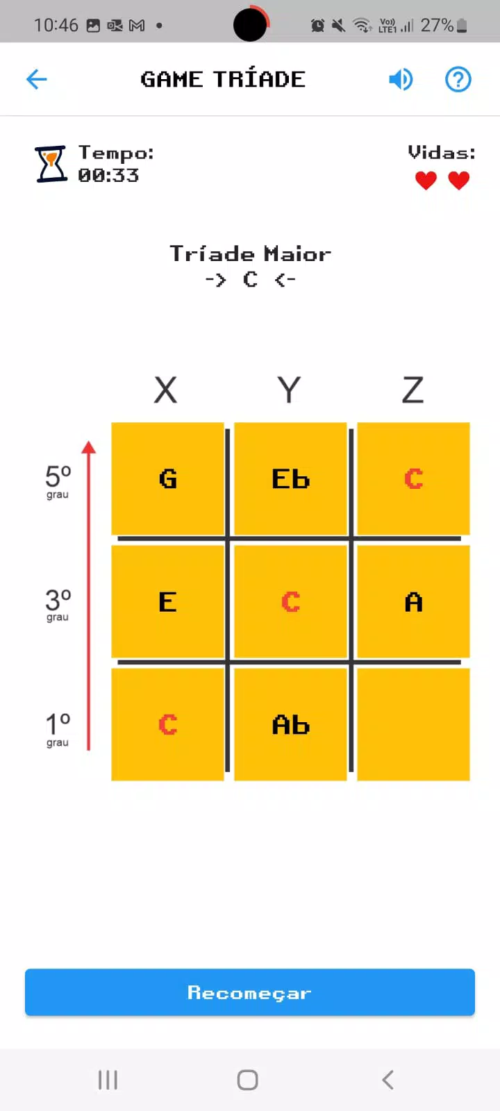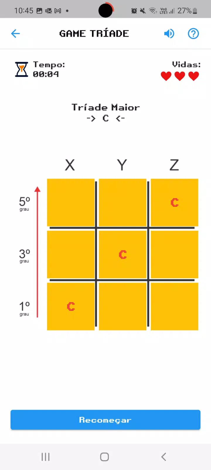 基于 Turi Collura 方法论的游戏,用于学习和修复和声研究中的主要、次要、减少和增加的三和弦。