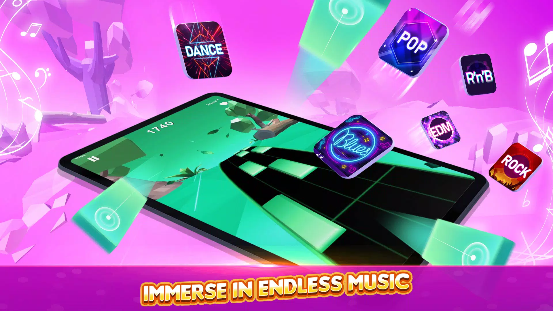 完美融合钢琴与电子舞曲 (EDM),只需轻触 3D 钢琴块即可演奏钢琴。轻松有趣,钢琴曲的旋律和节奏将随着您的指尖自由流淌。