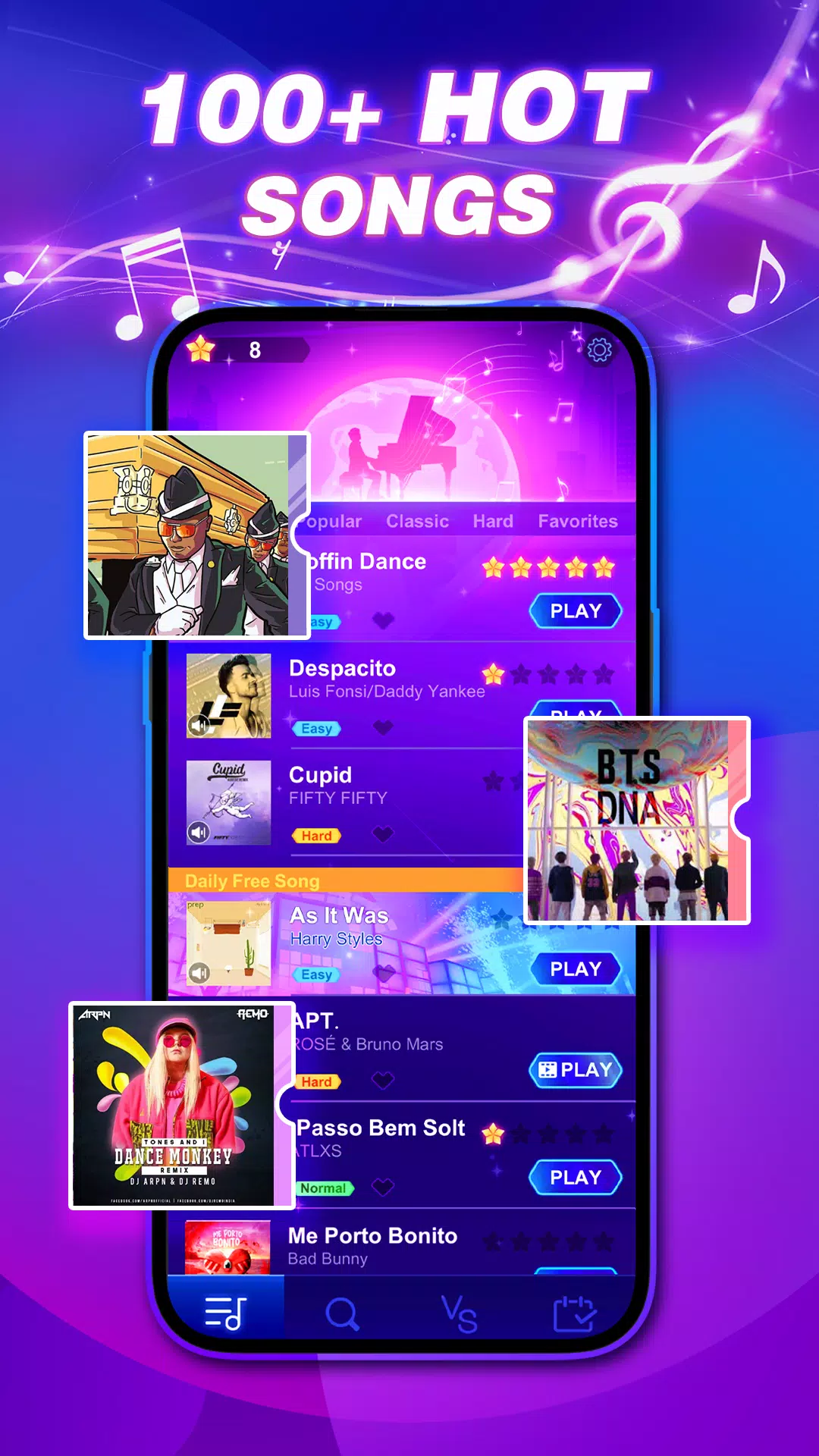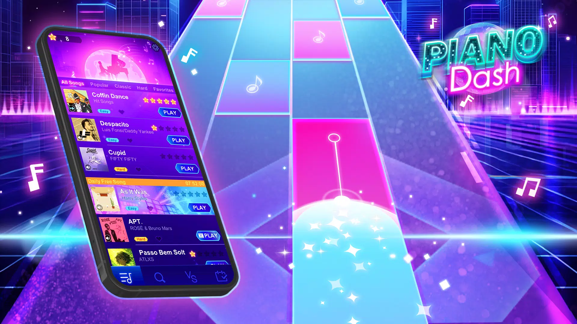 感受指尖每一次节奏的肾上腺素!在 Piano Dash 中,每一次点击都推动旋律前行。从经典名曲到热门流行曲,在音符方块上飞速前行,与对手实时对决,完成每日新挑战,让节奏永不停歇! 🎹🔥