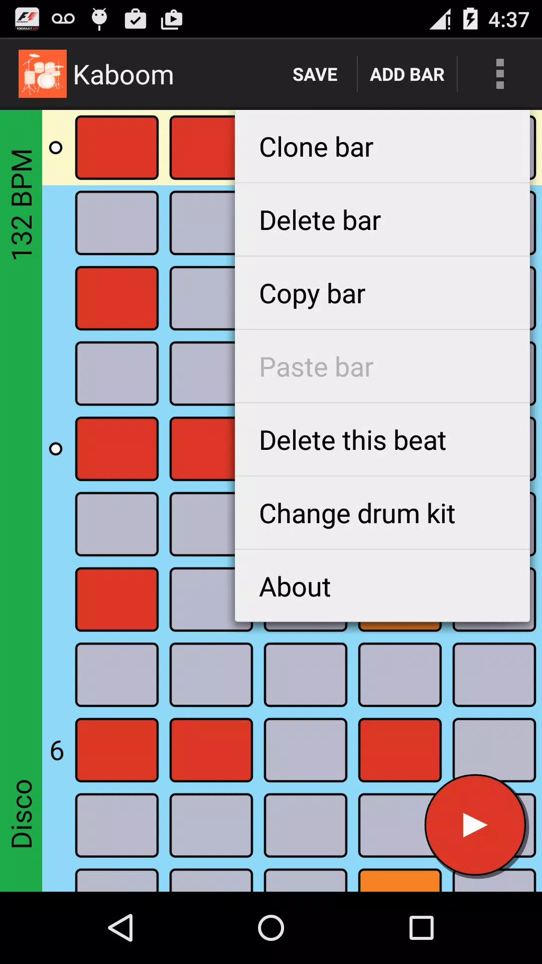 每一个鼓点可以有一个介绍和环能部分,将打,直到你停止它。