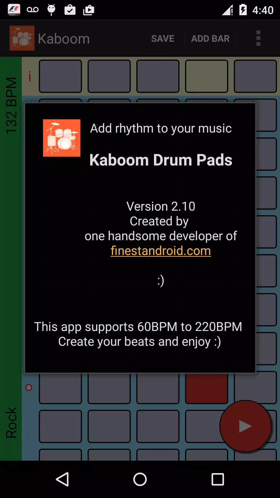 KABOOM鼓垫可以让你从60调整BPM到220,这将平稳甚至改变而鼓的节拍演奏。您可以选择速度或只需轻按它就像在一个良好的节拍器应用程序。