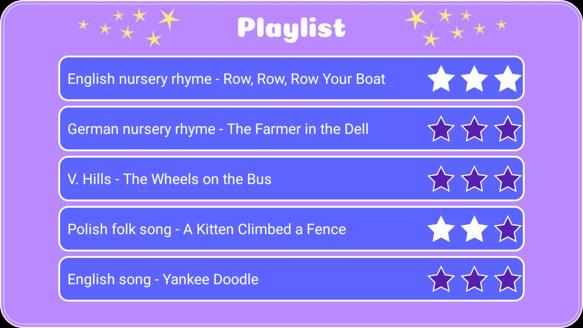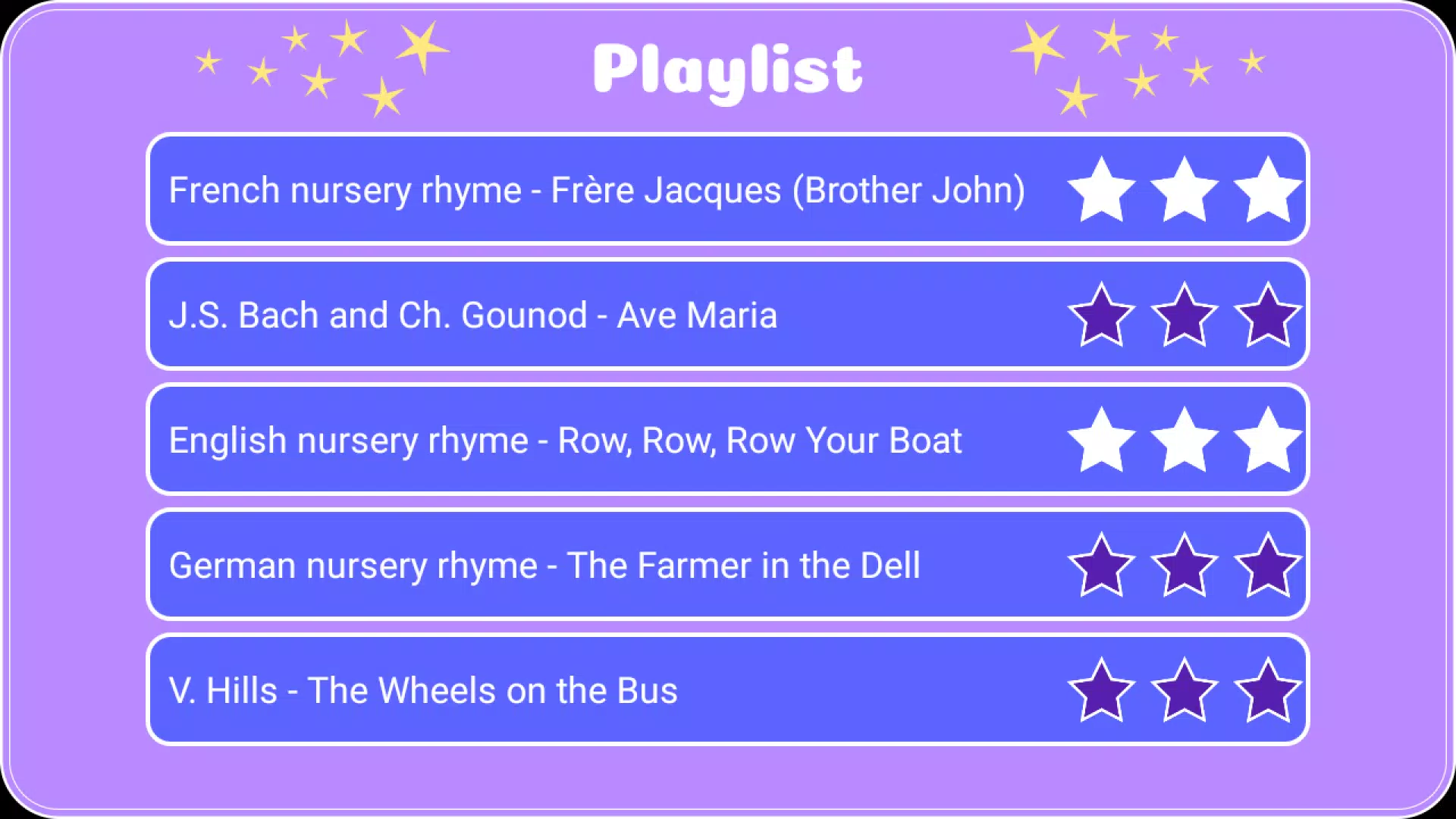 从我们的列表中播放一首歌曲,聆听它,然后单击“了解如何播放”。 单击突出显示的黄色键并播放整首歌曲。 该应用程序将评估您的表现。 成为冠军并为每首播放的歌曲获得 3 颗星!