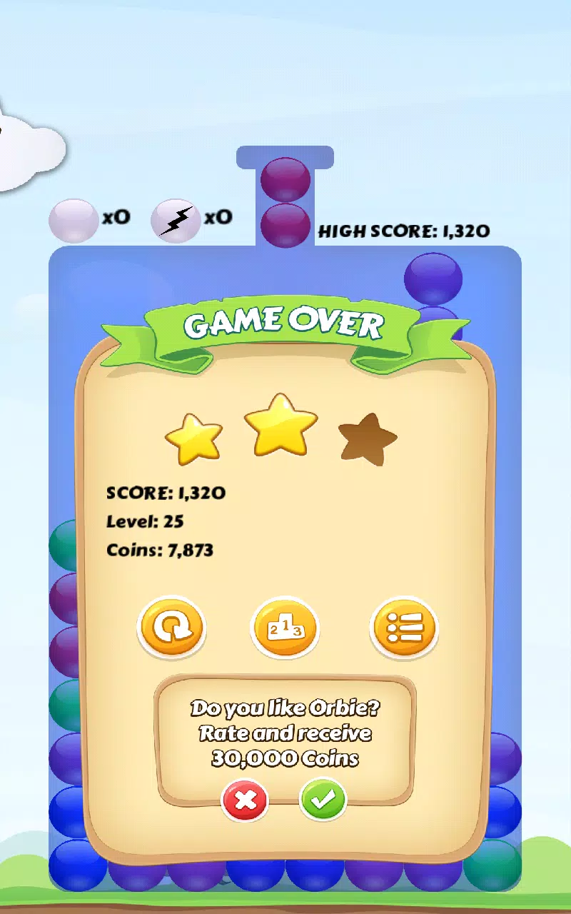 2.超级球是继续游戏的必需品。为了获得一个超级球,你需要获得组合,组合是指在一个球下落时,你可以删除多条行和列。此外,每移除一行5个球,将会获得一个超级球。每个超级球可删除您选择的一列球。在每次游戏开始时,你会获得3个超级球。