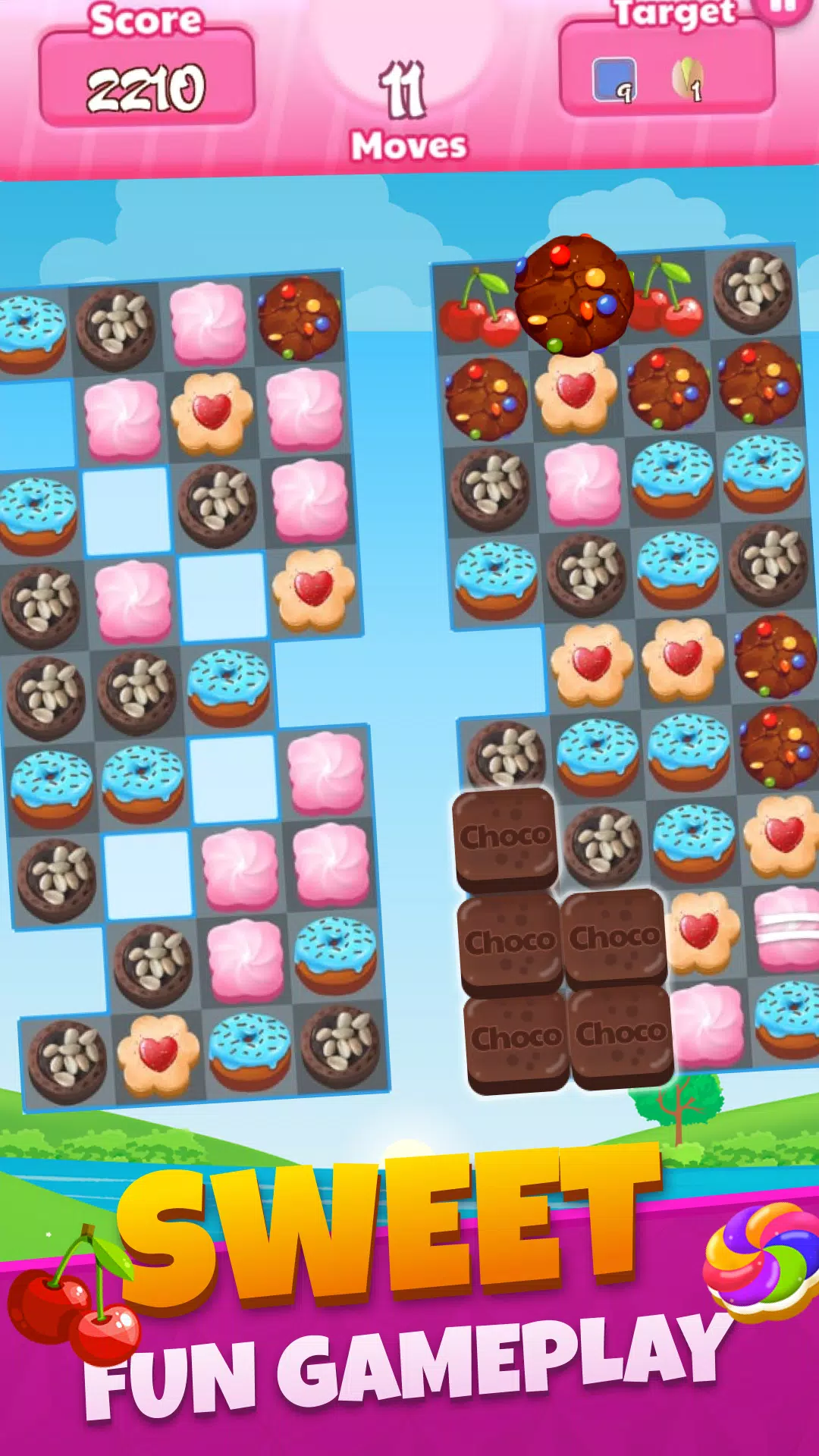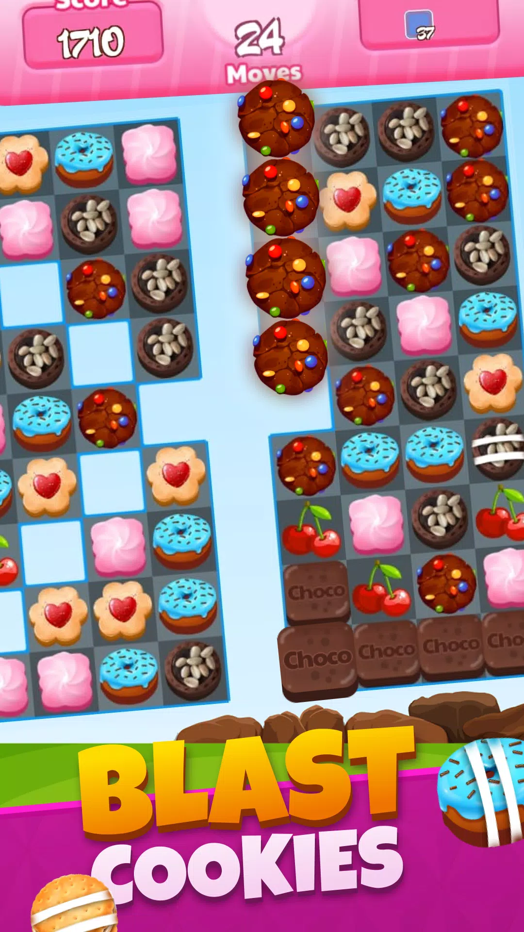 在Cookies Crush Blast中,挑战疯狂高分,与其他玩家一较高低。