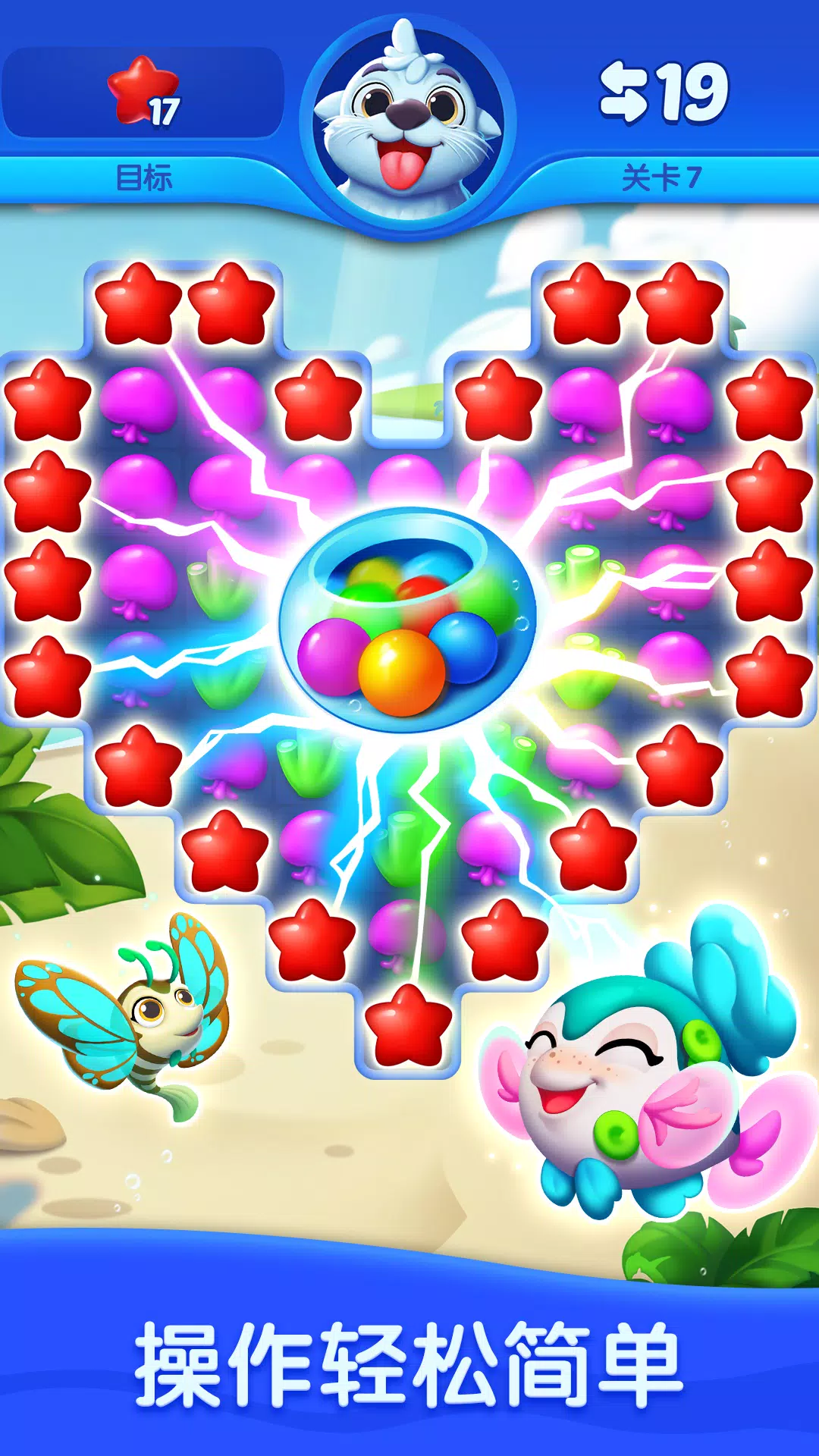 海洋欢乐消 Ocean Blast 是一款结合配对三消puzzle小游戏和海洋主题水族箱装修的离线益智游戏,拥有数以千计的有趣又具有挑战性的关卡!