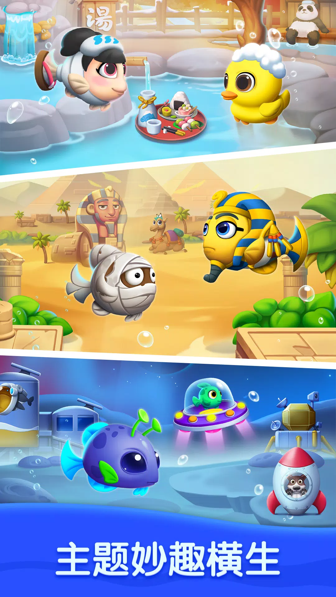 ⭐ 勇闯三消益智游戏关卡,解锁不同主题的水族馆,找到可爱的小鱼朋友们,收集美丽的装饰物!打造你独特风格的梦幻水族箱!