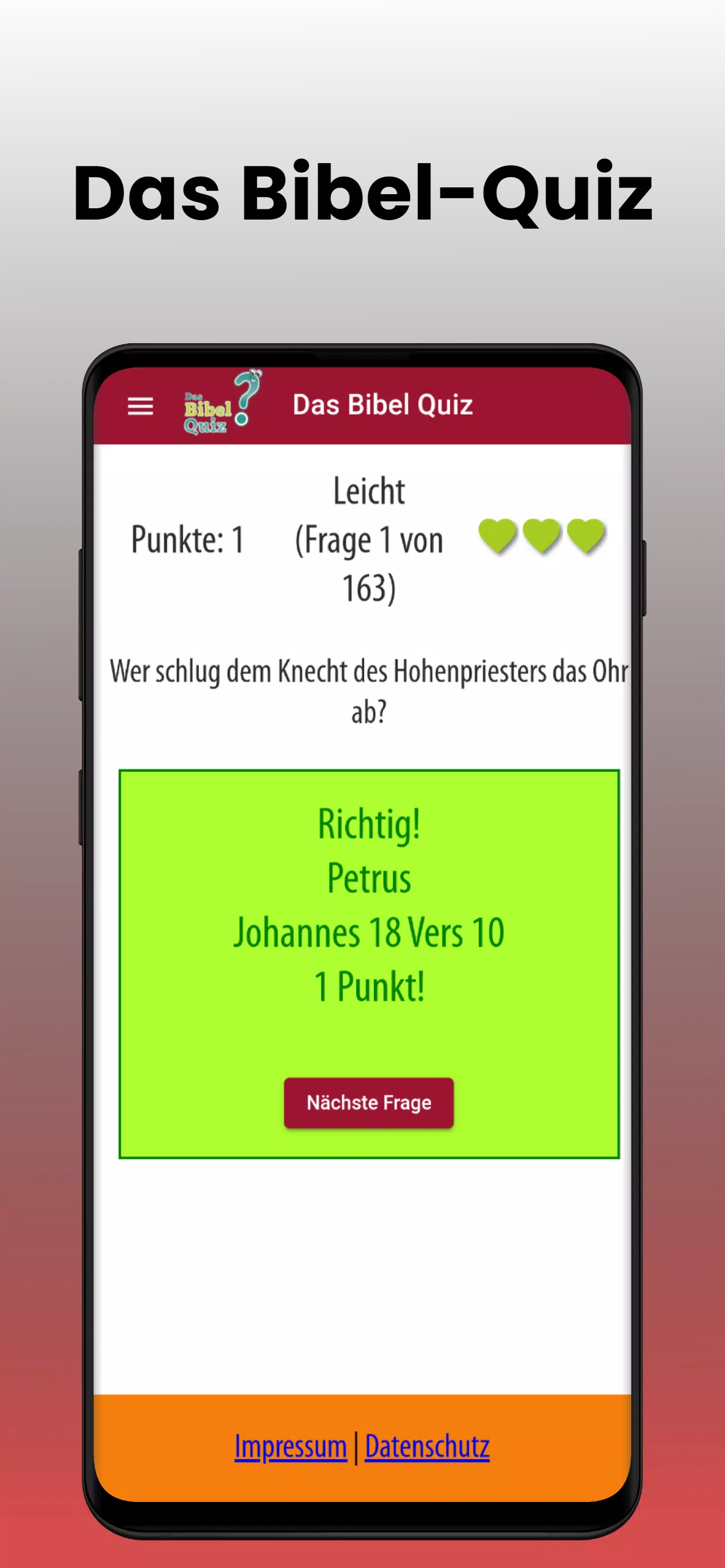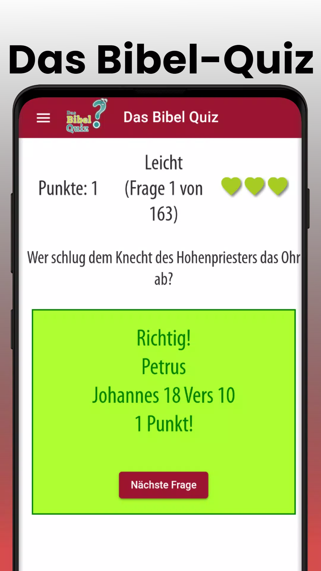 该应用程序还希望鼓励您自己打开圣经并检查答案,或者 – 圣经也被称为 – 定期阅读“上帝的话语”。