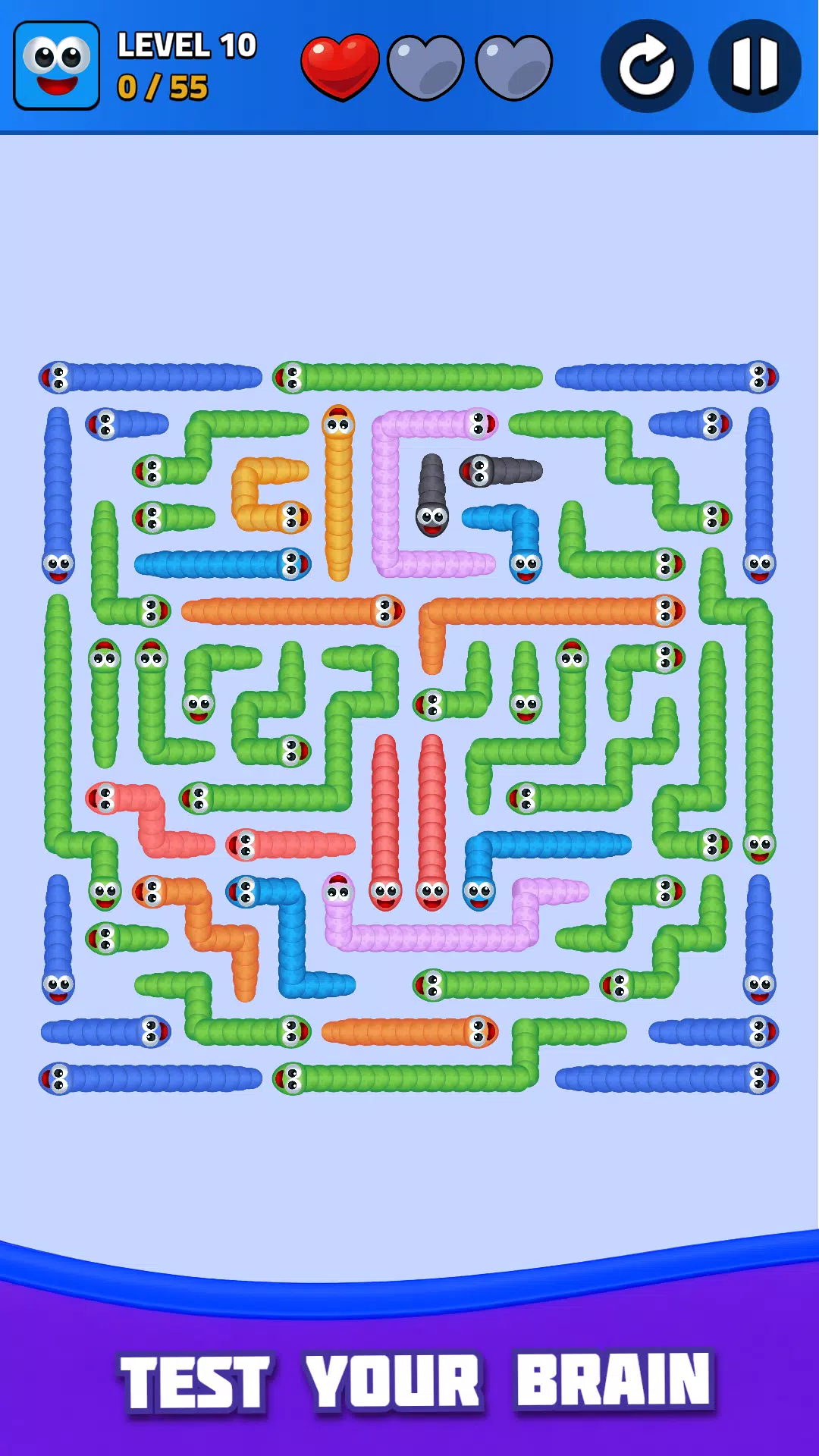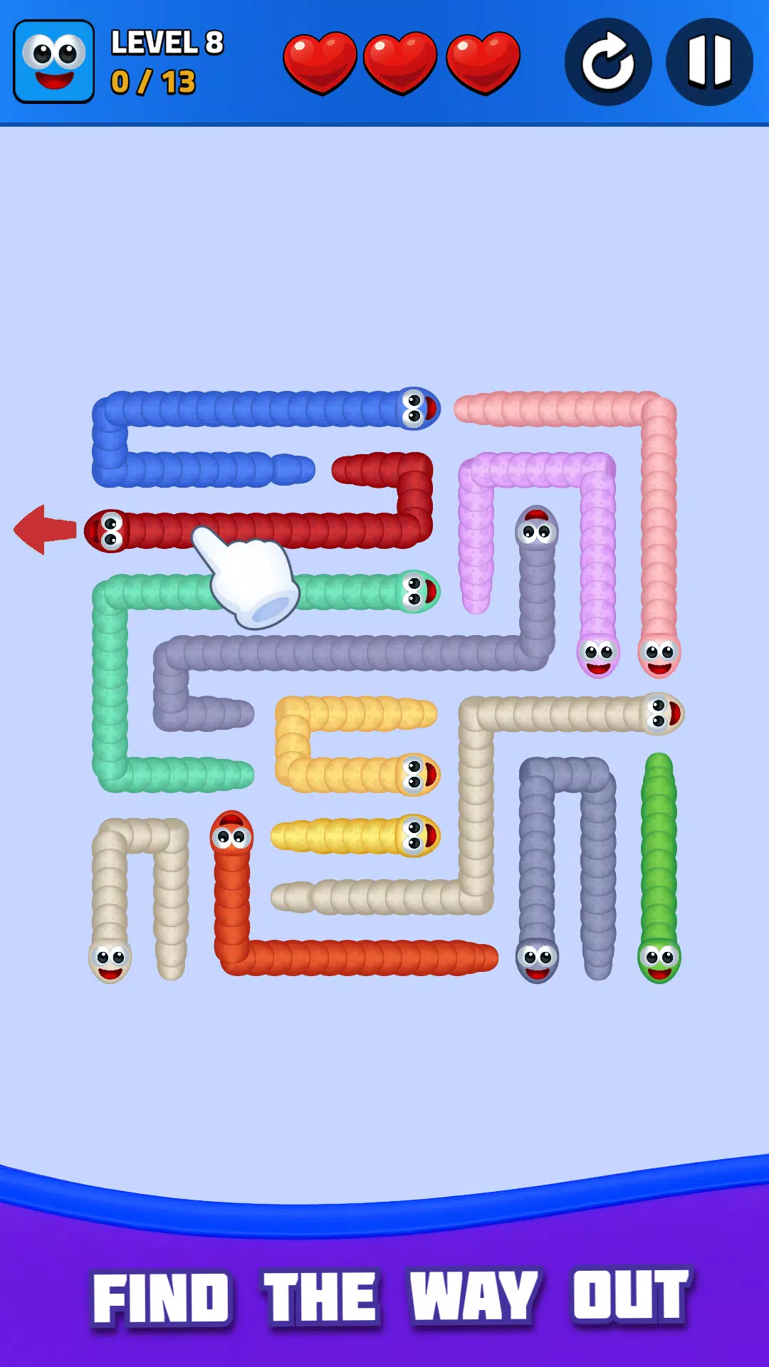 你必须提前思考,按正确的顺序移动,找到唯一能让每条蛇获得自由的路径。