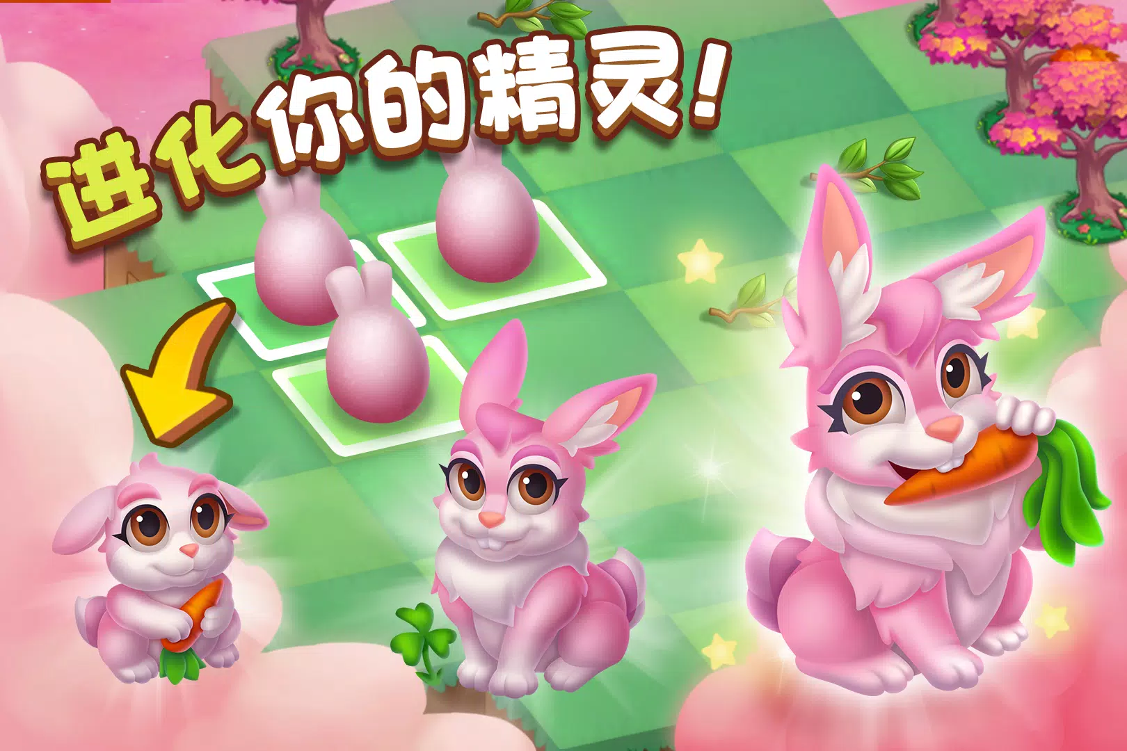 收集精灵蛋,在这个仙境中孵化它们,您可以获得小猫精灵、小狗精灵或更多神奇的精灵。