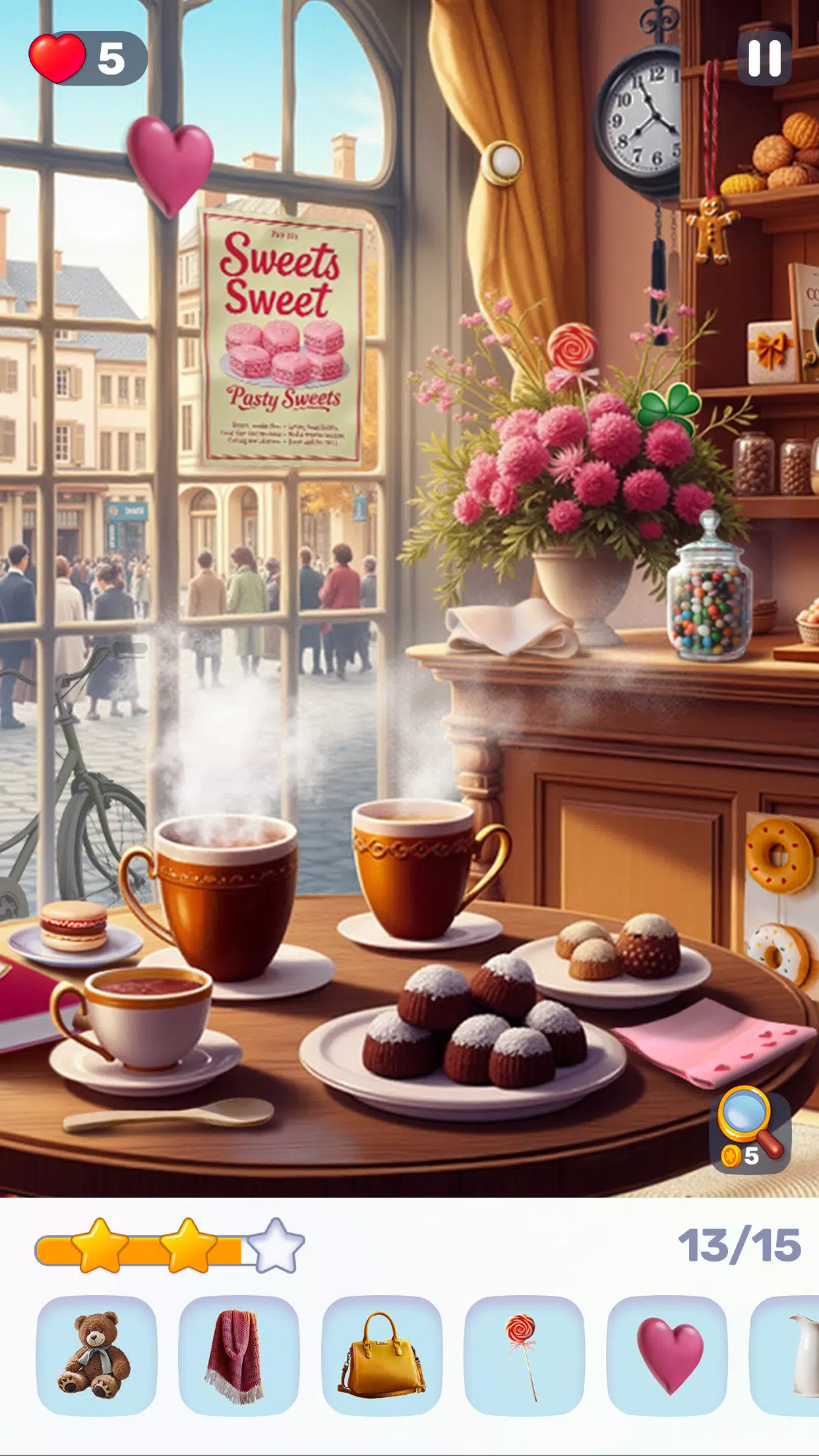 探索风景如画的小镇、国家、一年四季,甚至是不同的历史时代,寻找隐藏的物品。每一关都将考验你的观察力,带你穿越充满氛围的场景,如温馨的街边咖啡馆、复古的服装店、宁静的山间小屋——在这些意想不到的地方中,惊喜随时可能出现。无论你是休闲玩家还是经验丰富的谜题爱好者,这段旅程都会在每个转角带来放松与悬念。