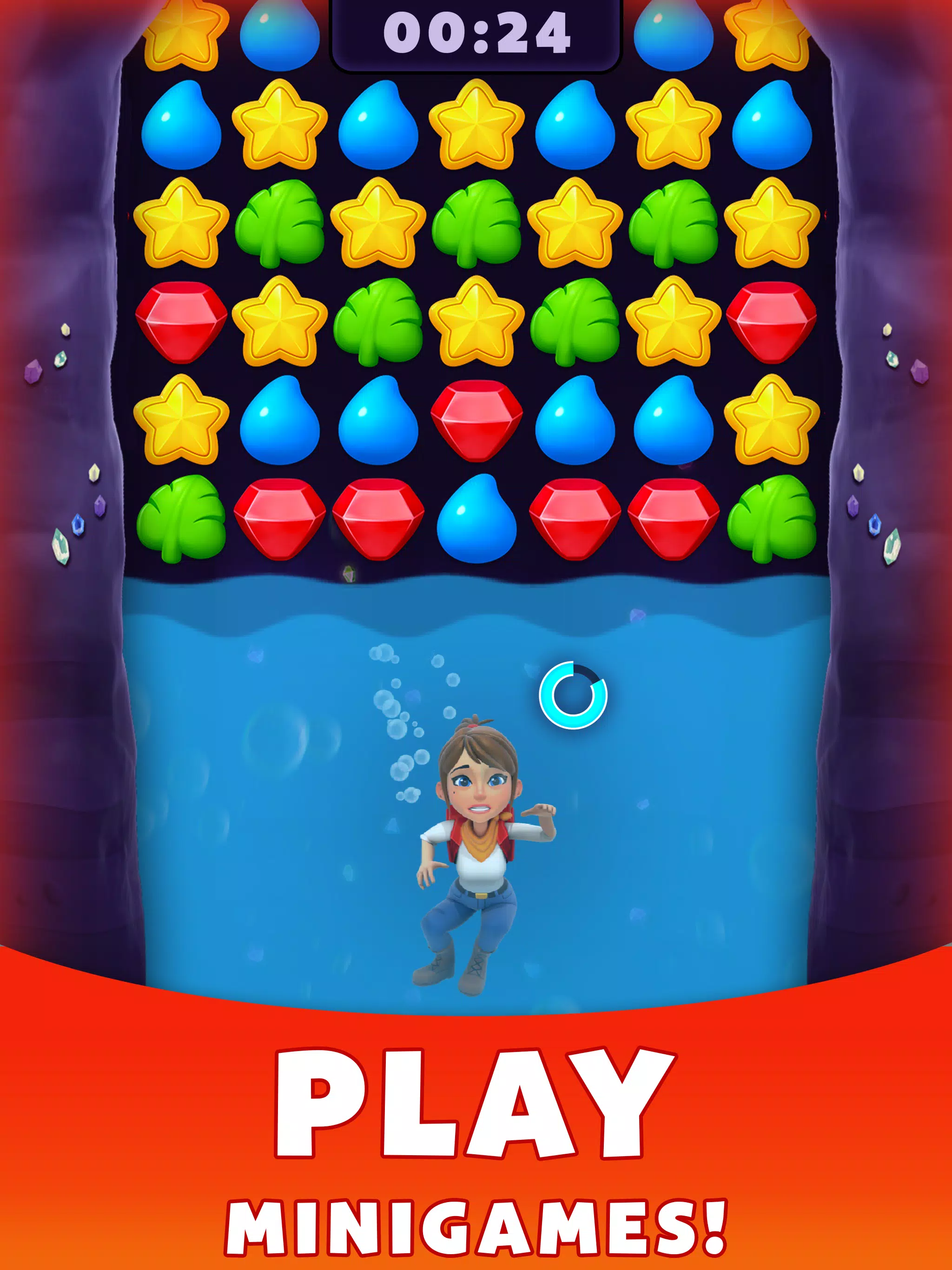 带着您的专属探险家和萌宠,乘坐热气球,开启一段充满惊喜的寻宝冒险之旅!在充满乐趣和挑战的方块谜题中,一路匹配并爆破,然后测试您的运气,在惊险刺激的桌游旅程中掷骰子。在寻宝派对中,您永远不知道会发现什么——金币、闪亮的宝藏,甚至还有一两个迷你游戏!