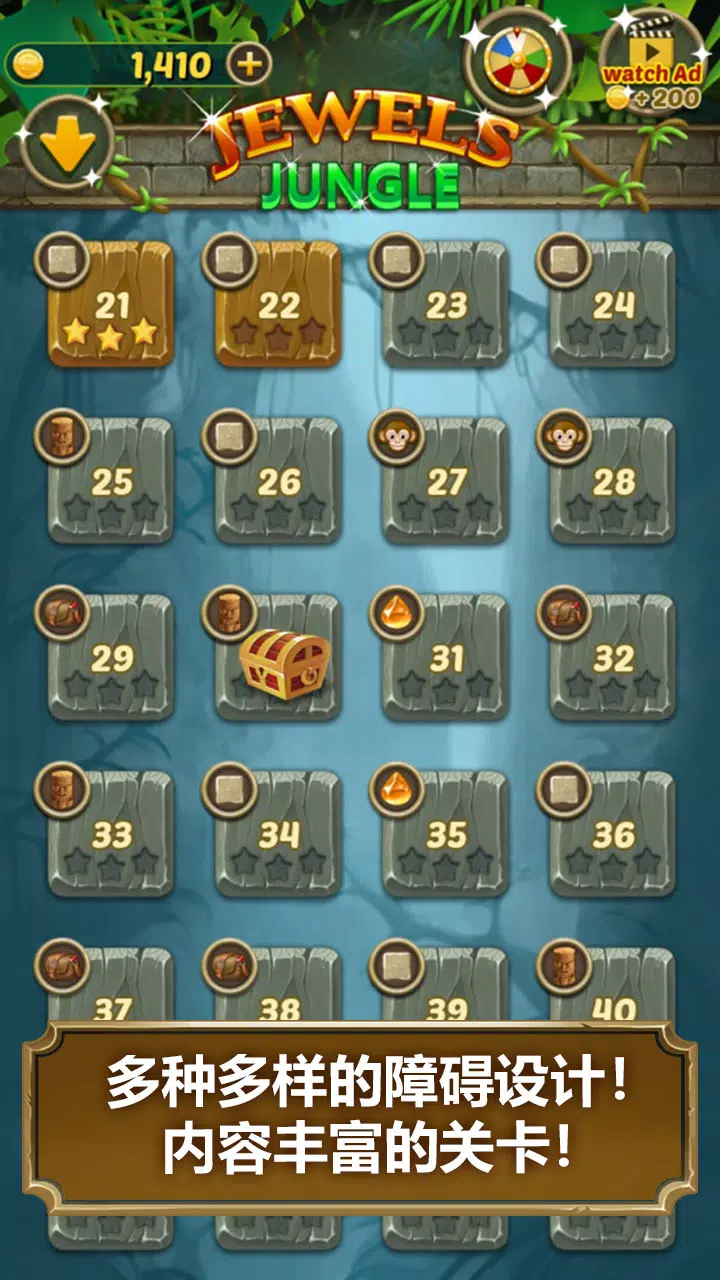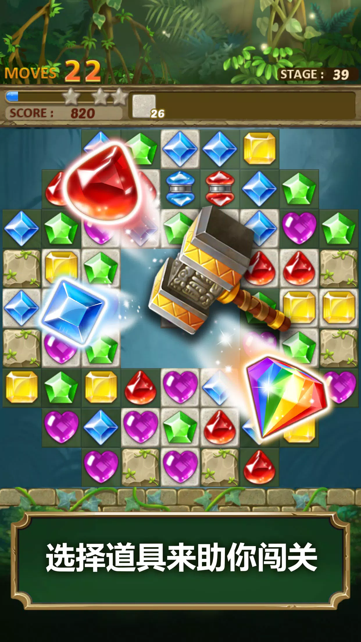🦎闪亮华丽的宝石三消游戏。宝石满满的密林中享受三消游戏带来的游戏乐趣。