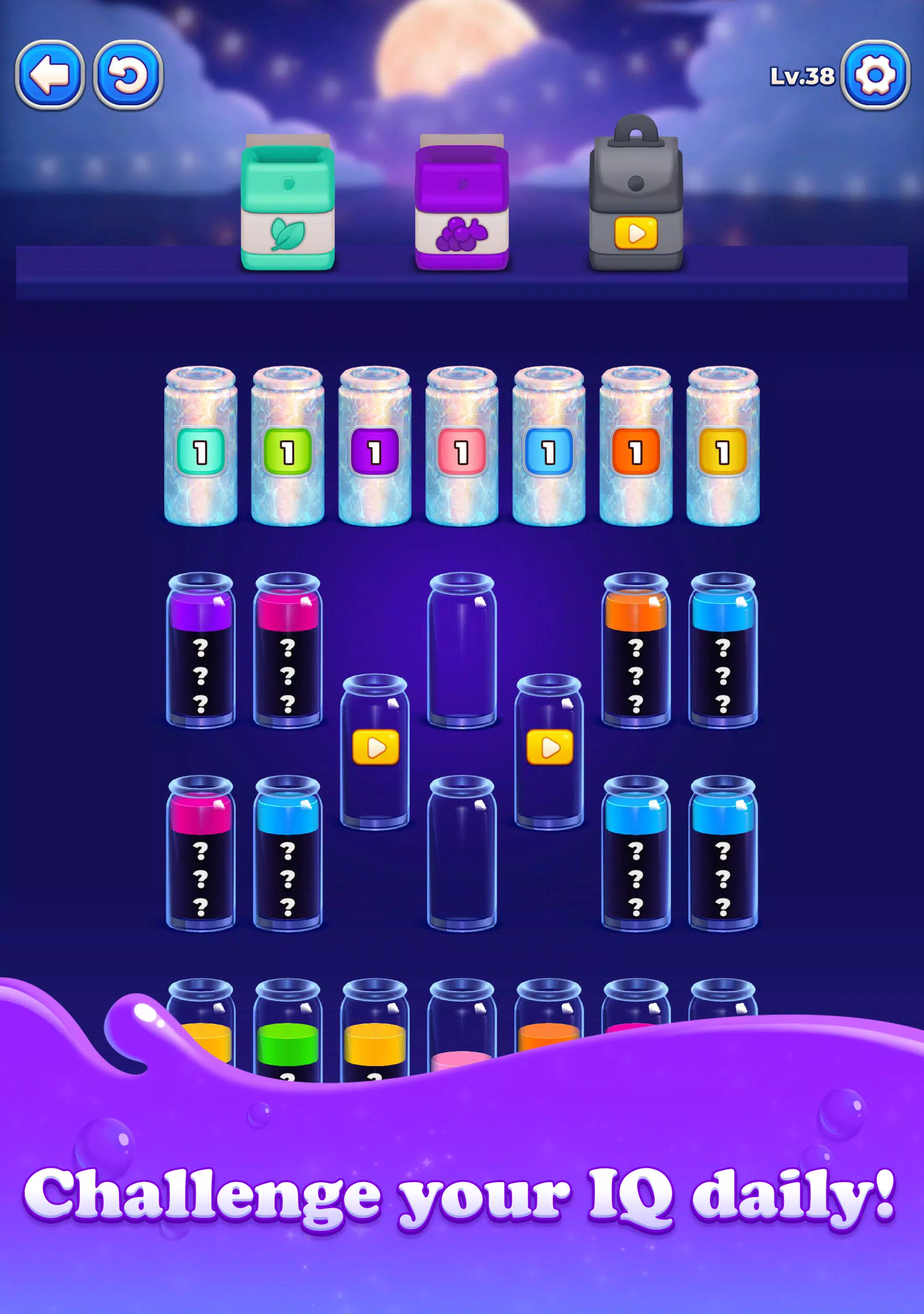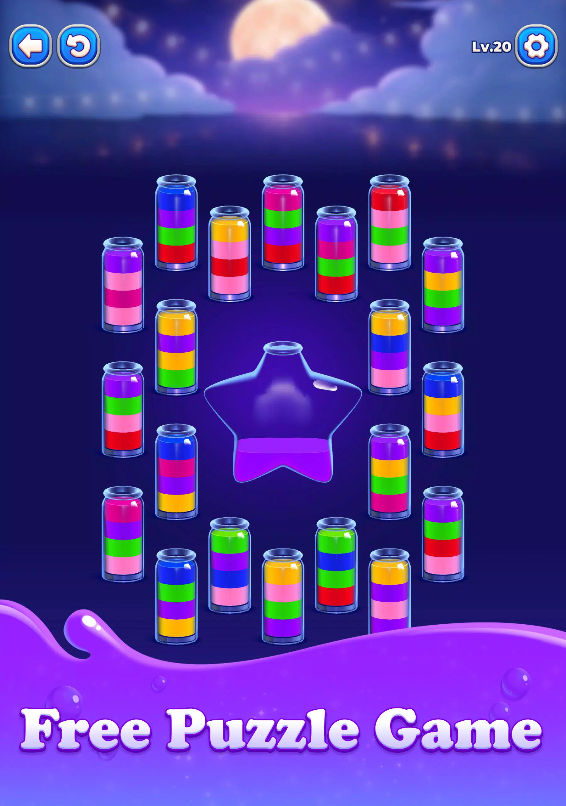 每个关卡中,混合的液体等待着您的整理。您的目标很简单:运用逻辑思维匹配颜色,完成令人满足的果汁排序挑战。随着谜题难度的增加,游戏也将从休闲娱乐转变为有益的脑力锻炼。每个排序谜题都经过精心设计,确保公平、易于解决,并带来深深的满足感。