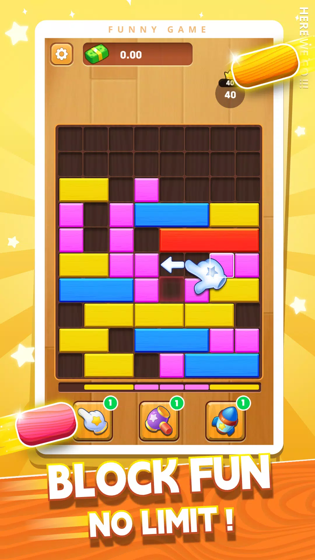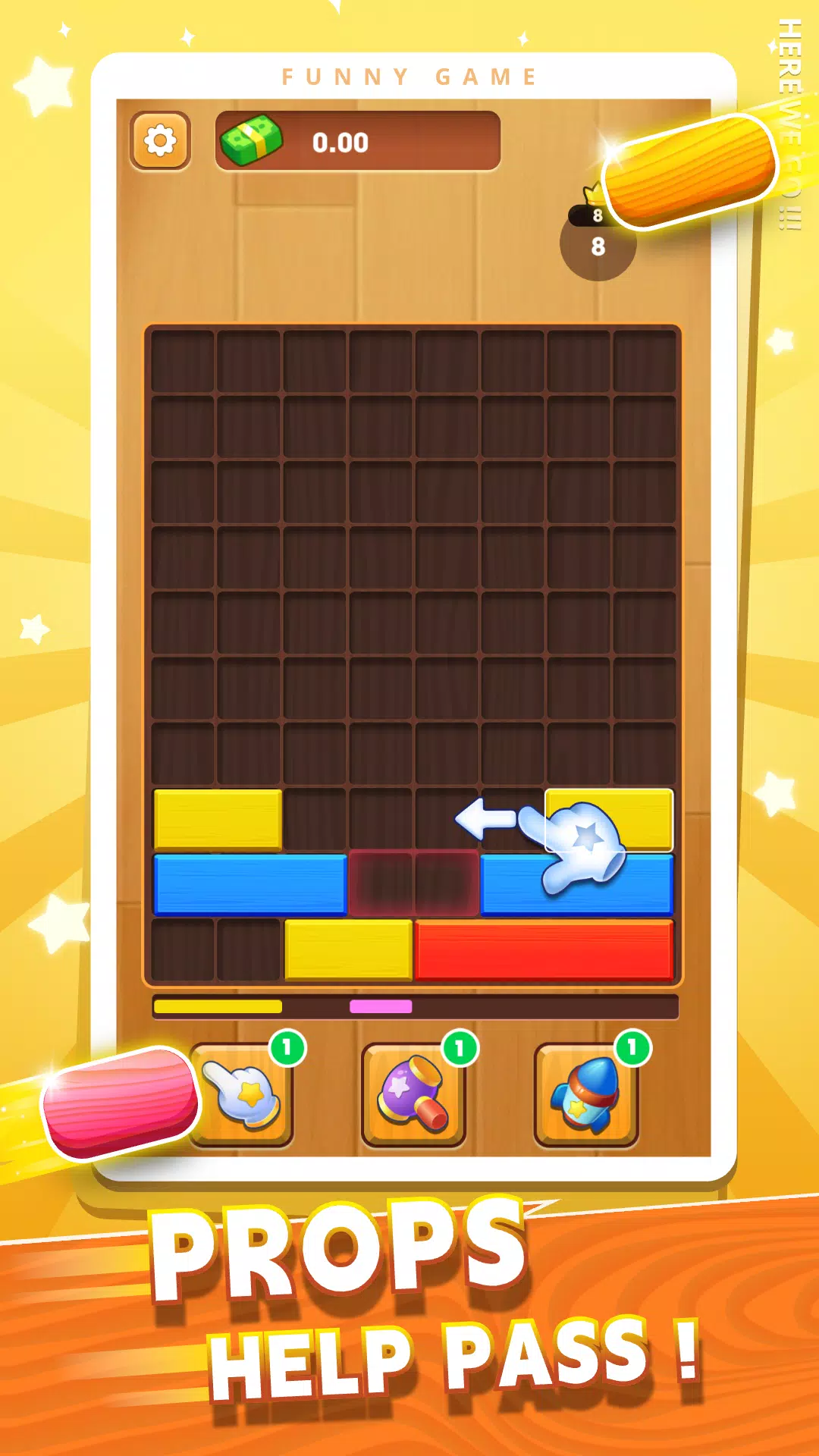 每一轮都邀请您将色彩缤纷的方块滑动到位,按照您的方式塑造棋盘。滑动与对齐:水平移动方块,完成整行消除。