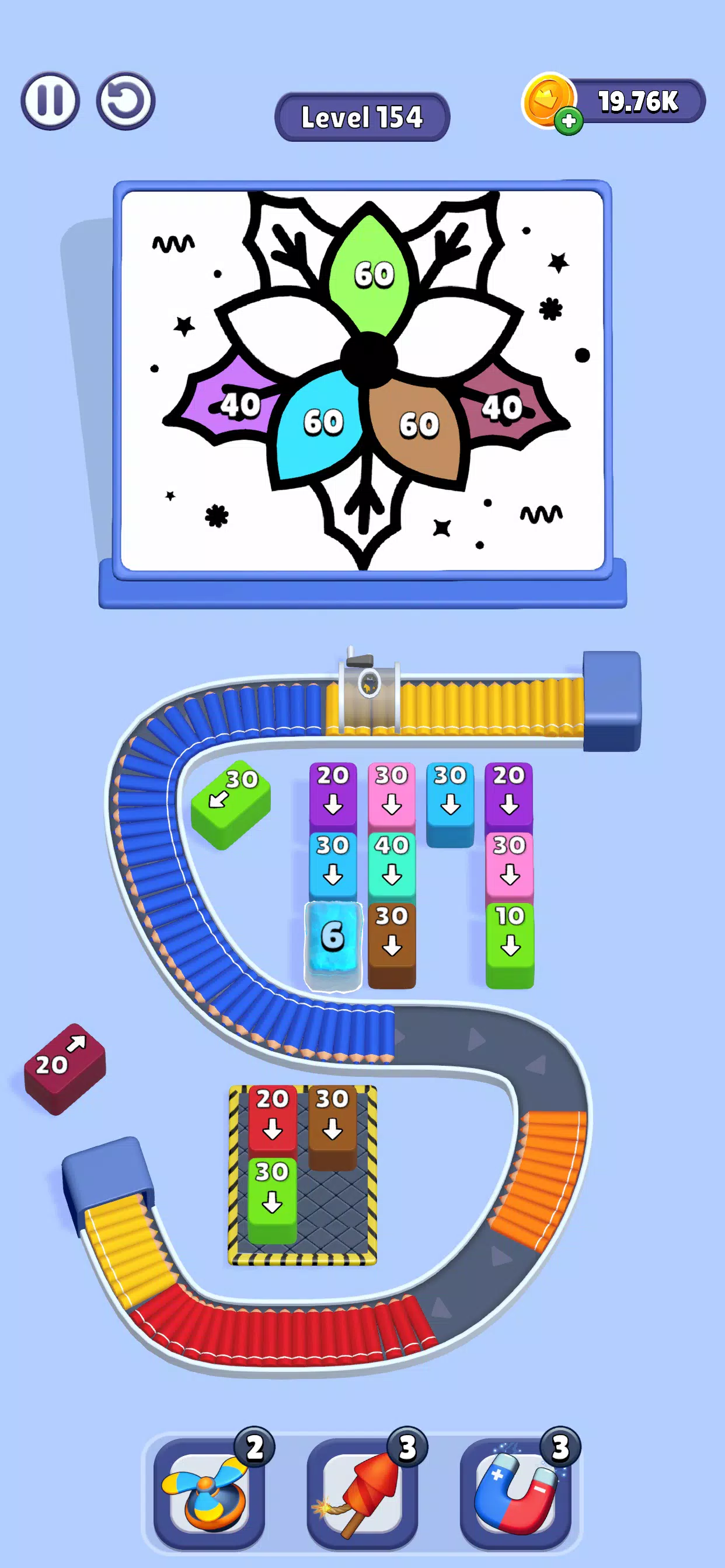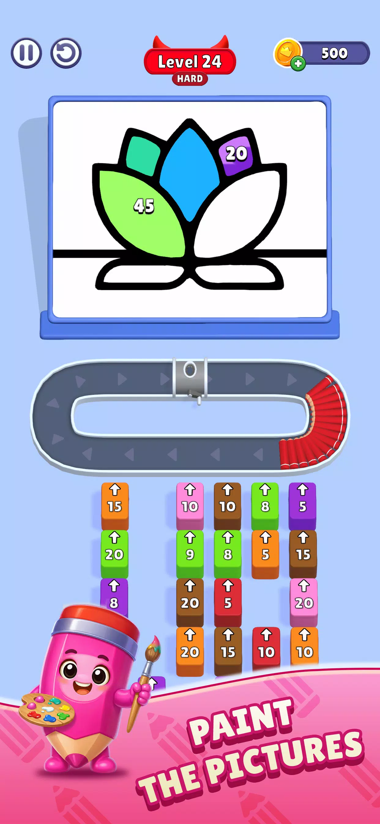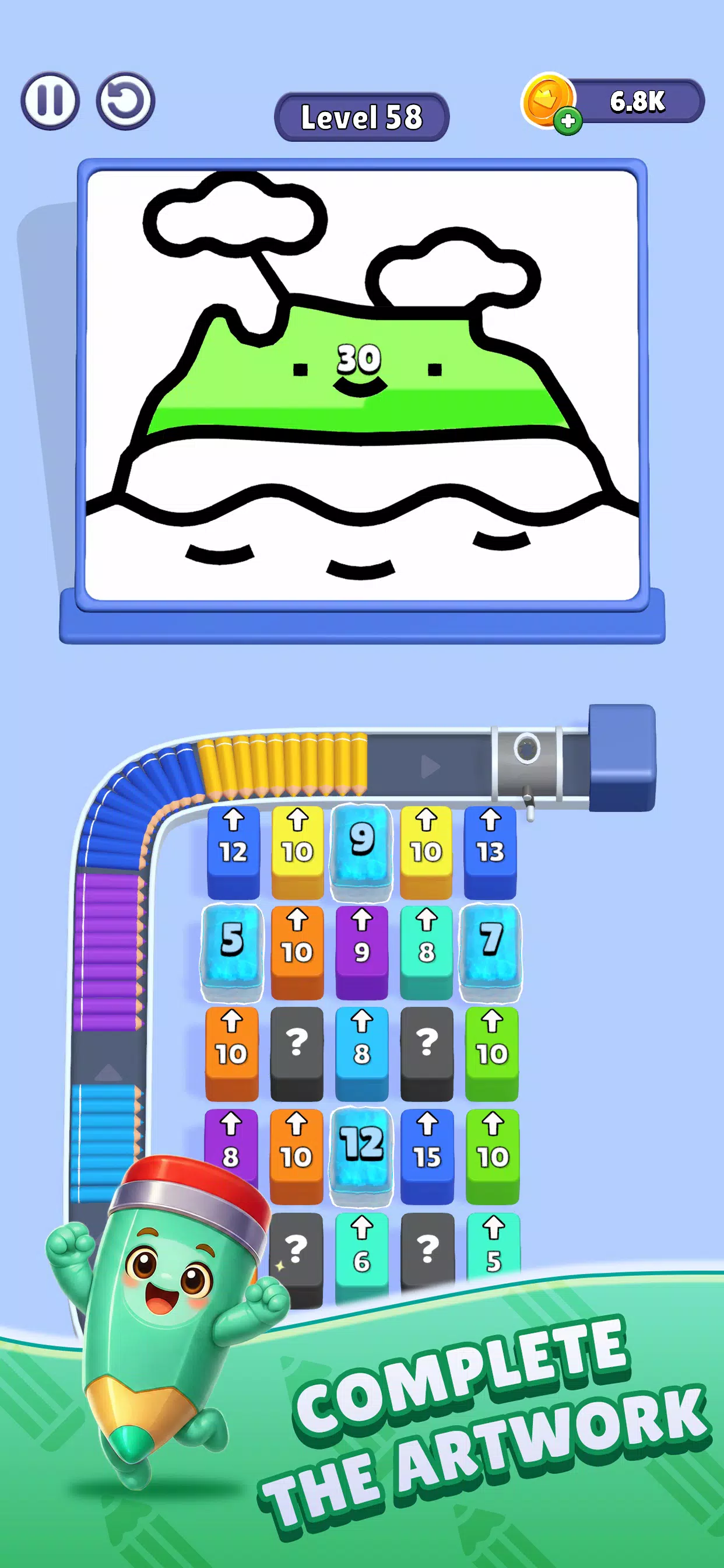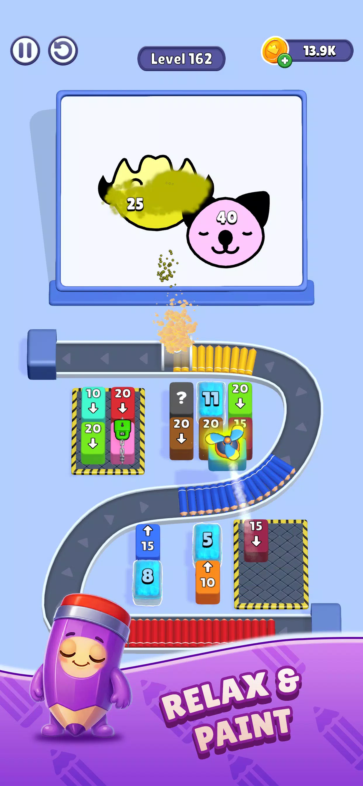 移動鉛筆盒穿過循環,正確地削尖並著色,揭開隱藏在下面的圖案。每一步都至關重要。規劃好你的行動,解開謎題,完成整幅藝術作品。