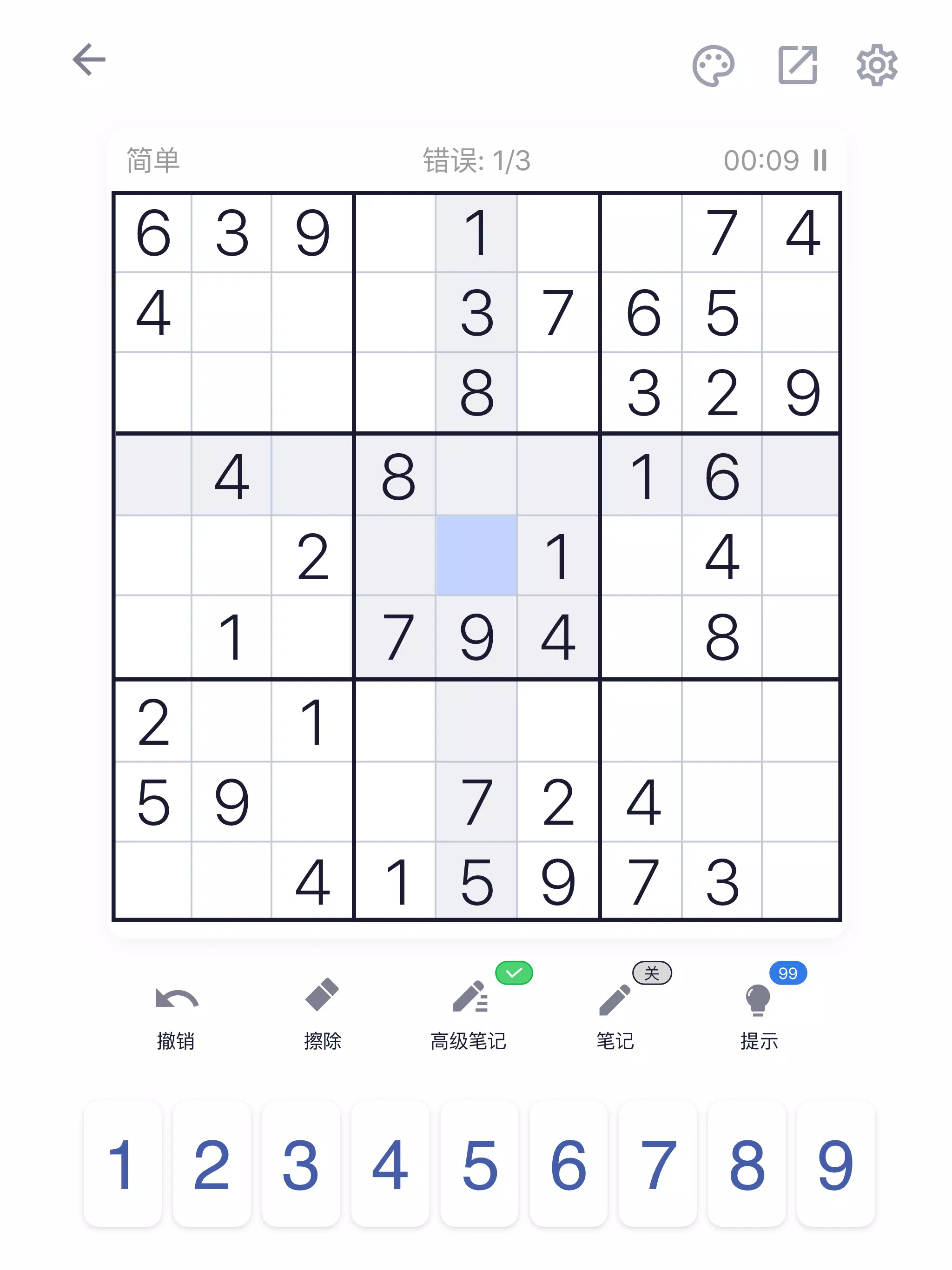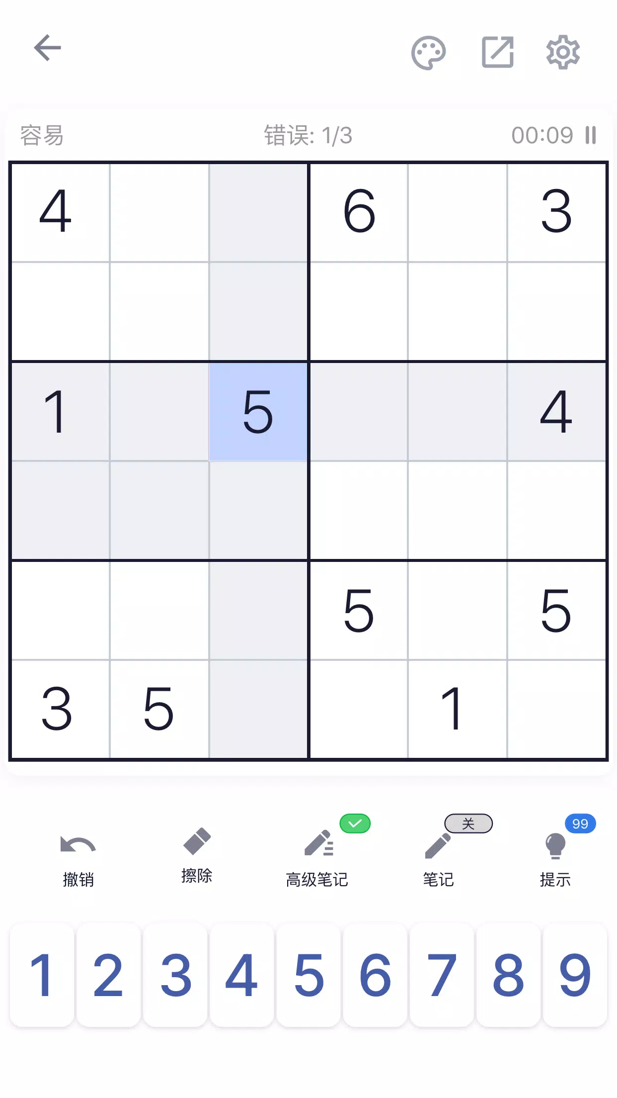 ✓ 突出显示重复项,可避免在一行、一列或一个方块中有重复数字