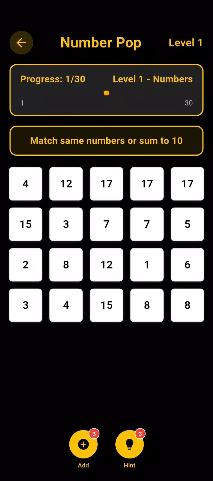 🎯 趣味数字拼图 – 点击、匹配并弹数字以清空棋盘。