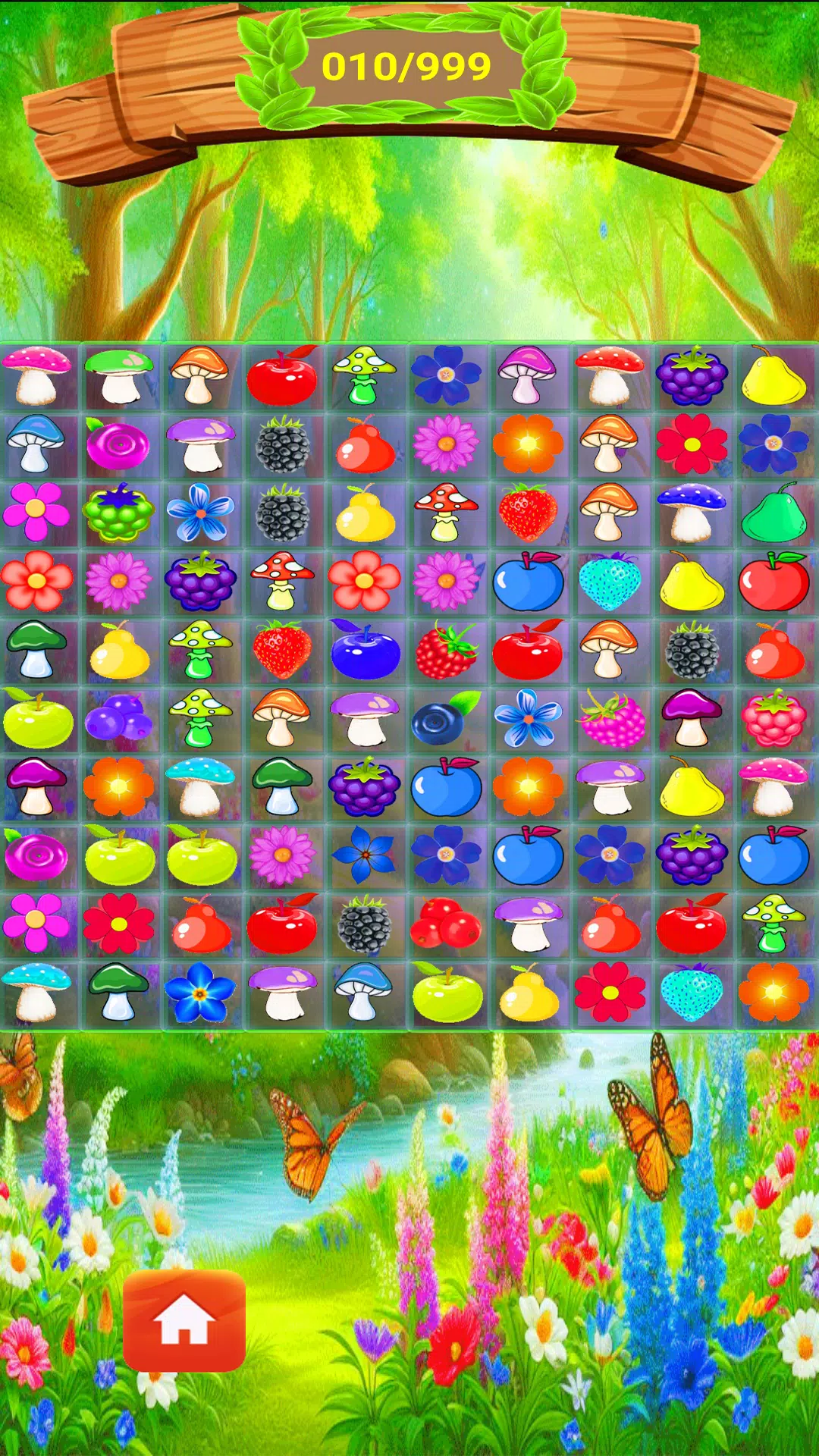 在您面前是一个以表格形式划分为正方形(单元格)的游戏场。每个单元格可以包含一个元素,它可以是:浆果,蘑菇,花等。游戏的目标是完成每个级别分配给玩家的任务。一般来说,任务涉及收集一定数量的指定元素或简单地收集一定数量的分数。当元素在表格的列或行中排列成三个或三个以上的行时,元素将被收集。例如,要采摘三个蓝莓,您需要将它们并排放置,即将第三个添加到两个。单击下一个单元格中的浆果并将其拖动到这两个单元格中。请注意,您只能从相邻(右侧、顶部、底部或左侧,但不能对角线!)单元格拖动元素。