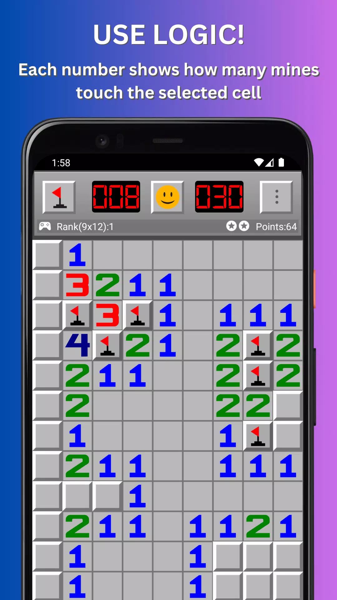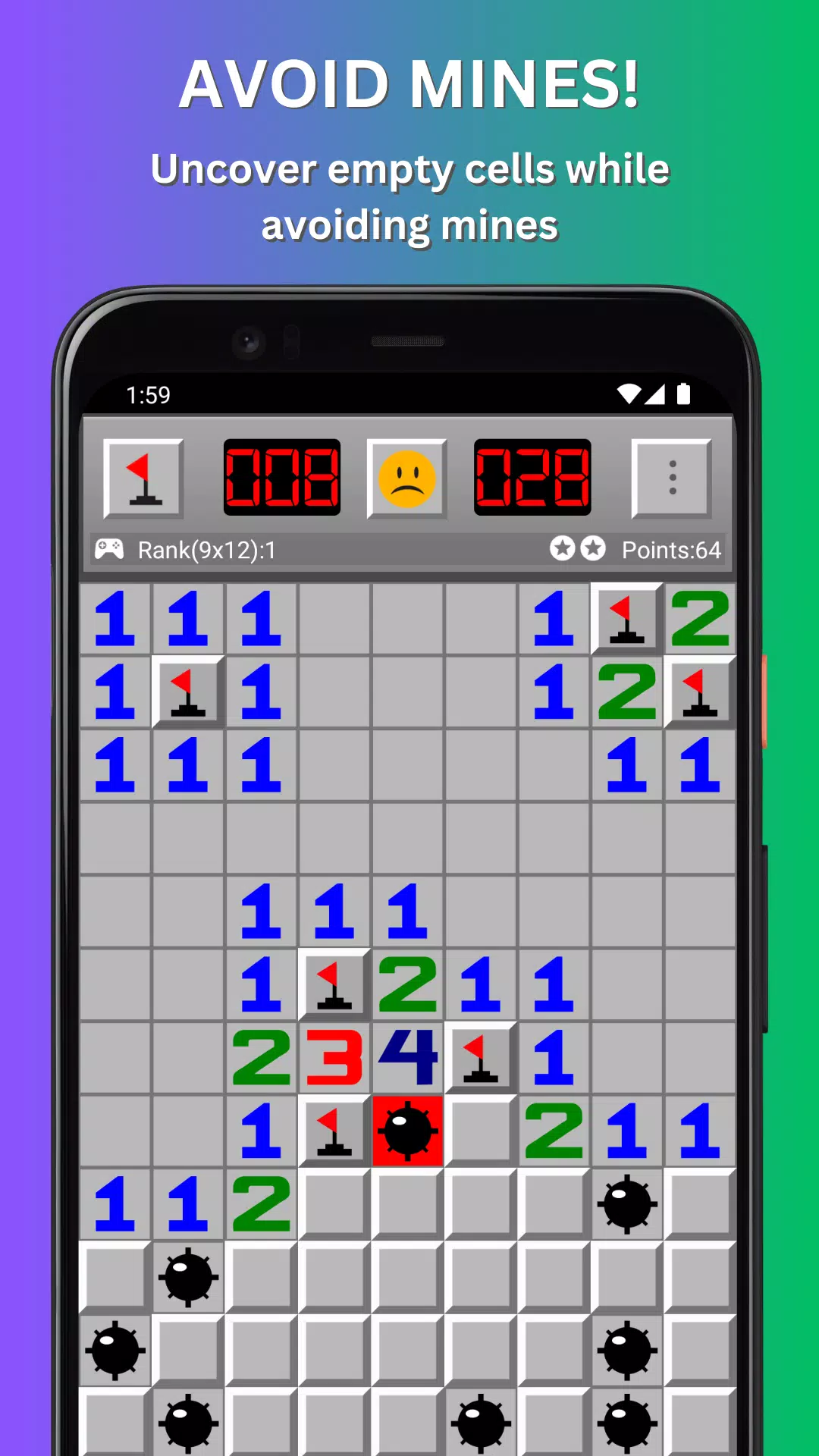 扫雷是最好的大脑训练游戏🧠。游戏的目标是清除一个包含隐藏“地雷”的矩形棋盘,并且不引爆任何地雷,游戏会根据每个区域相邻地雷的数量提供线索。