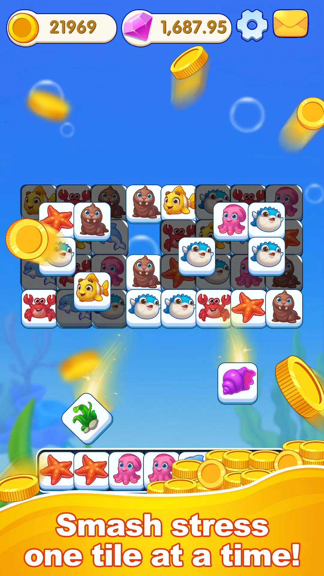 沉浸在舒缓的海浪声、悠扬的旋律和活泼的水生音效中。精心设计的音效旨在帮助你放松身心,集中注意力,享受每一次点击和滑动。
