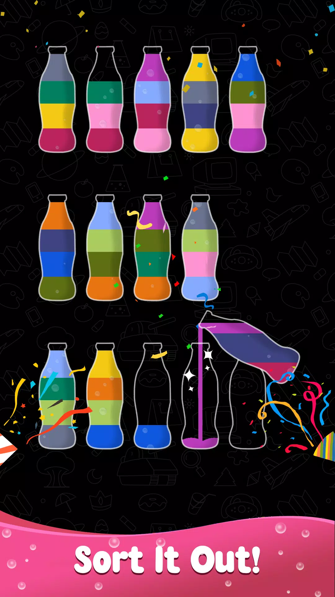 • 点击任意瓶子,将水彩倒入另一个瓶子。