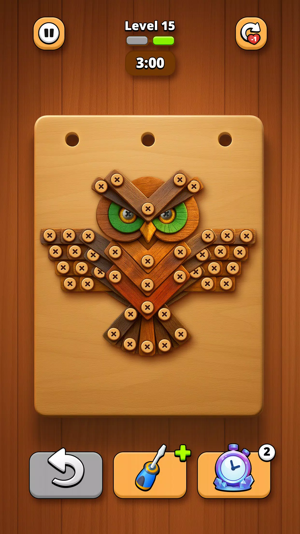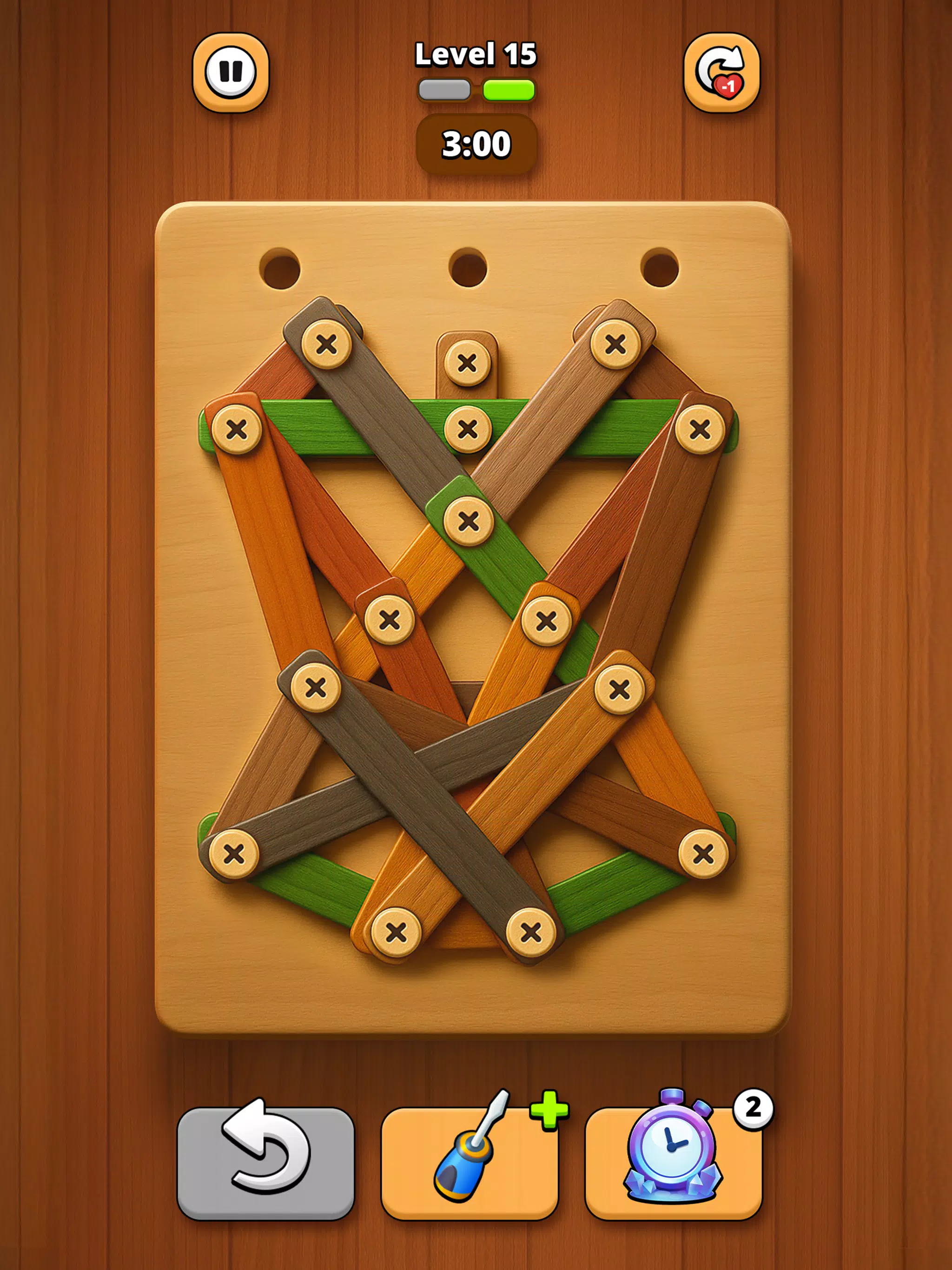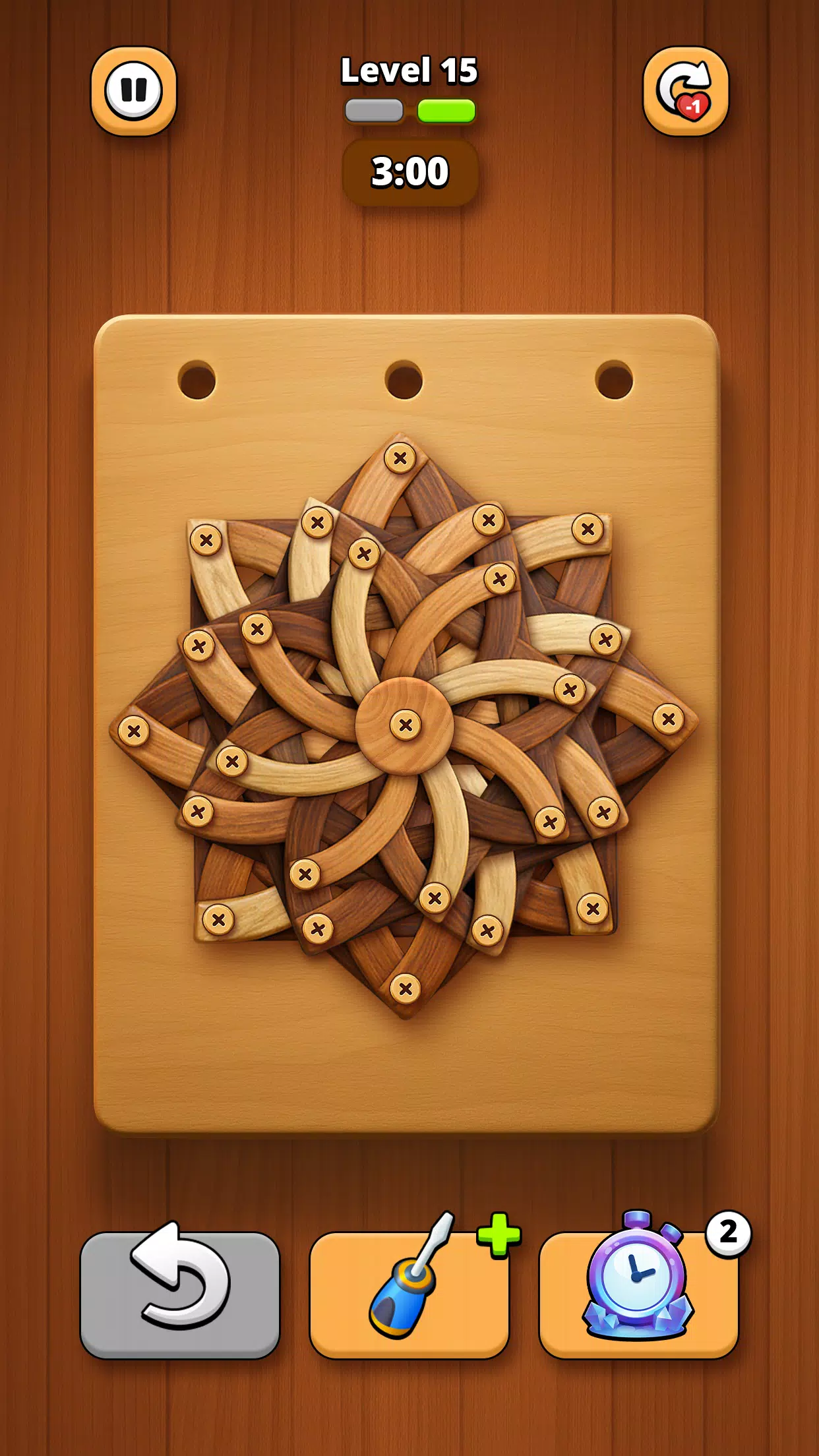 如果你喜欢木制品游戏、棘手的物理益智游戏,或者只是喜欢拧开螺母和螺栓的满足感,那么这款木螺丝拼图绝对会让你欲罢不能。制定你的策略,将每个螺丝钉都拉到位,轻松应对螺母和螺栓的挑战。