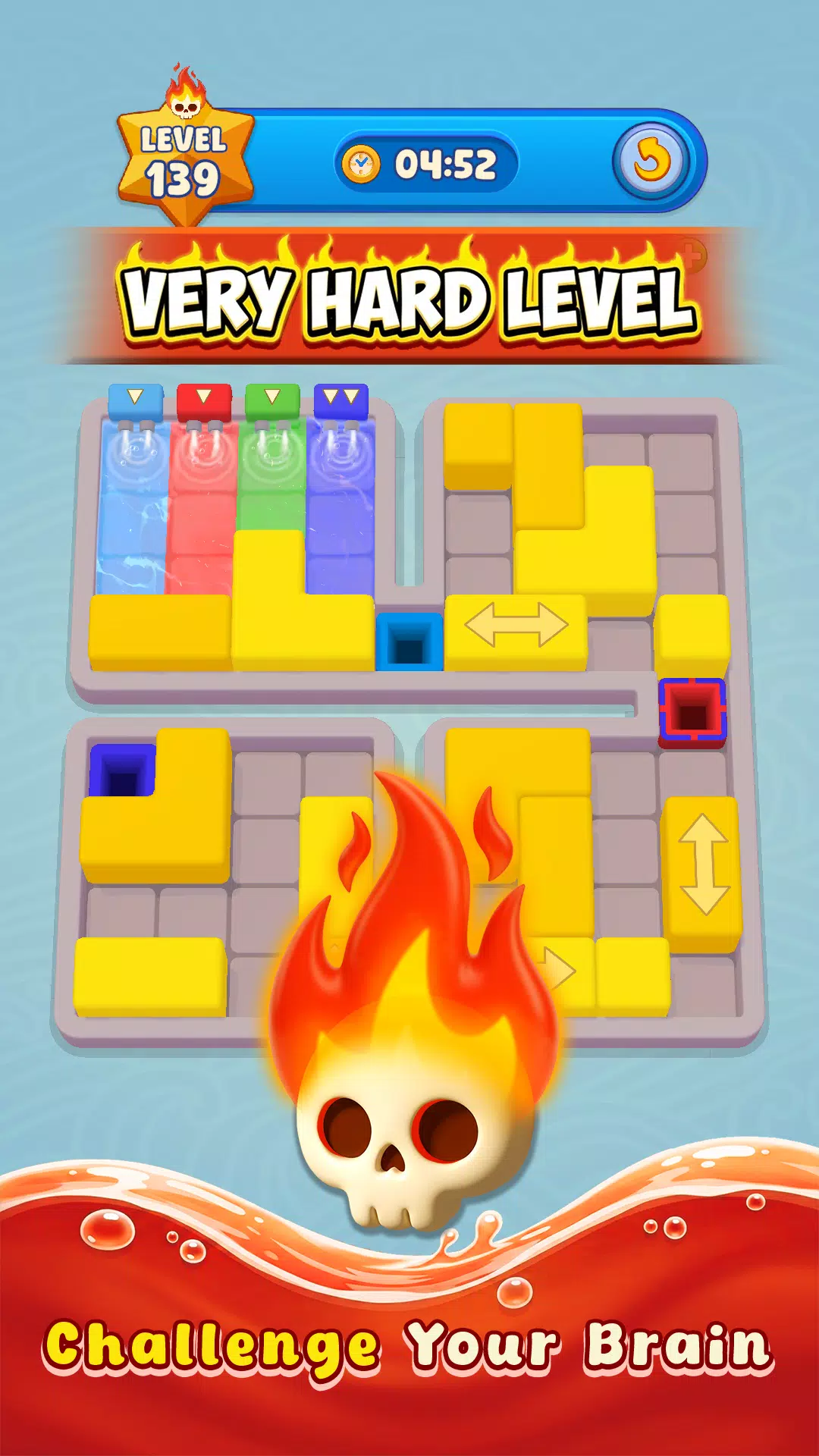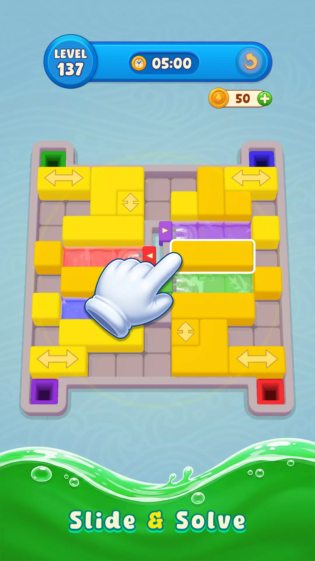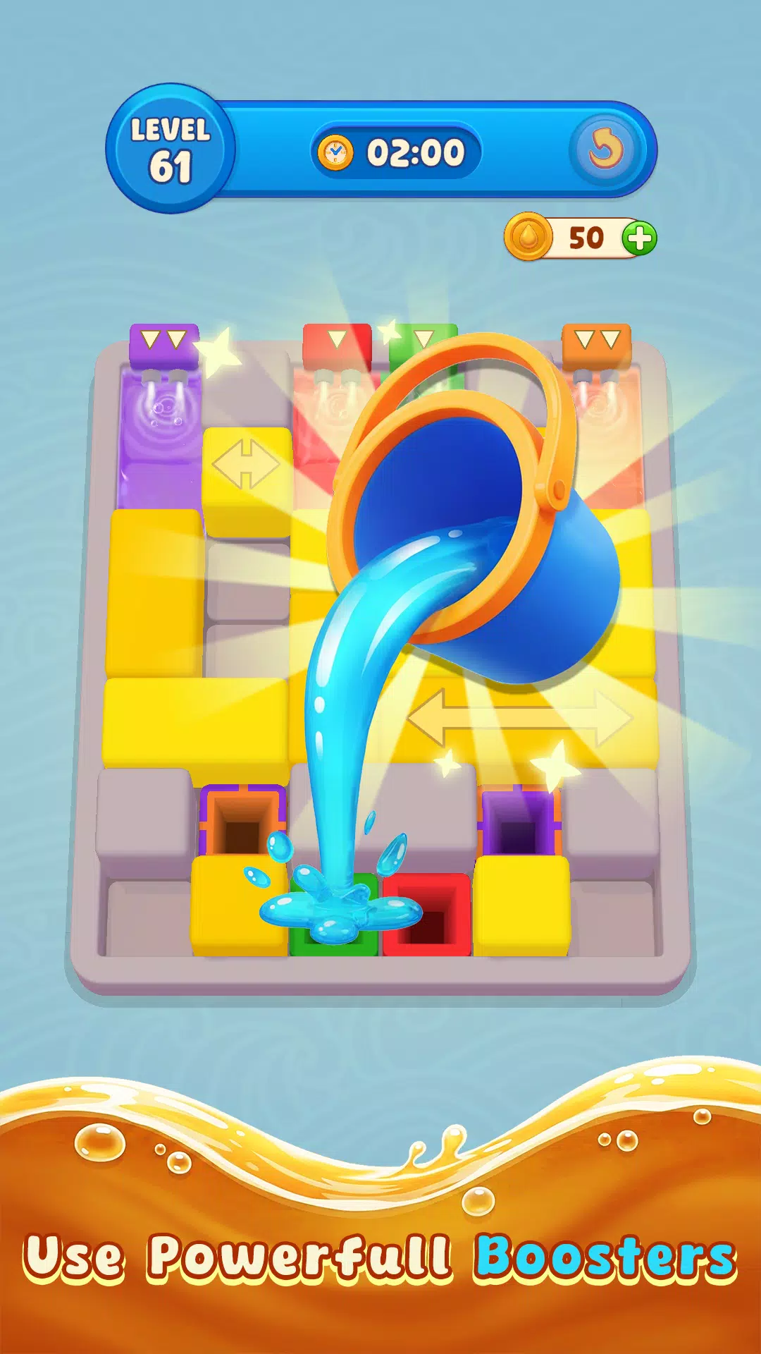 滑动方块引导水流向出口。每一关都考验你的预判能力、清除障碍物,并通过巧妙的布局控制水流。看似简单的关卡很快就会变成对策略和时机的考验。