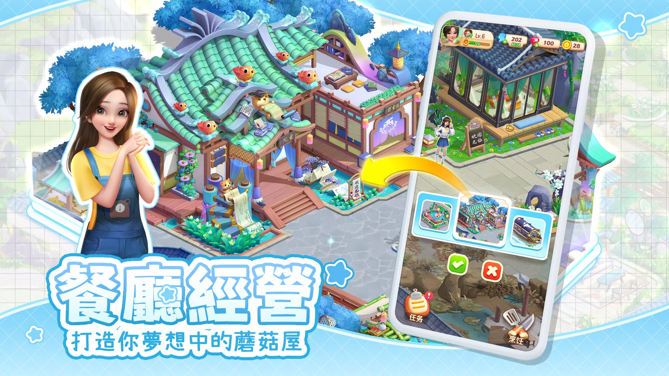 完成装修任务,可打造你的可爱餐厅,解锁更多精彩的故事情节!