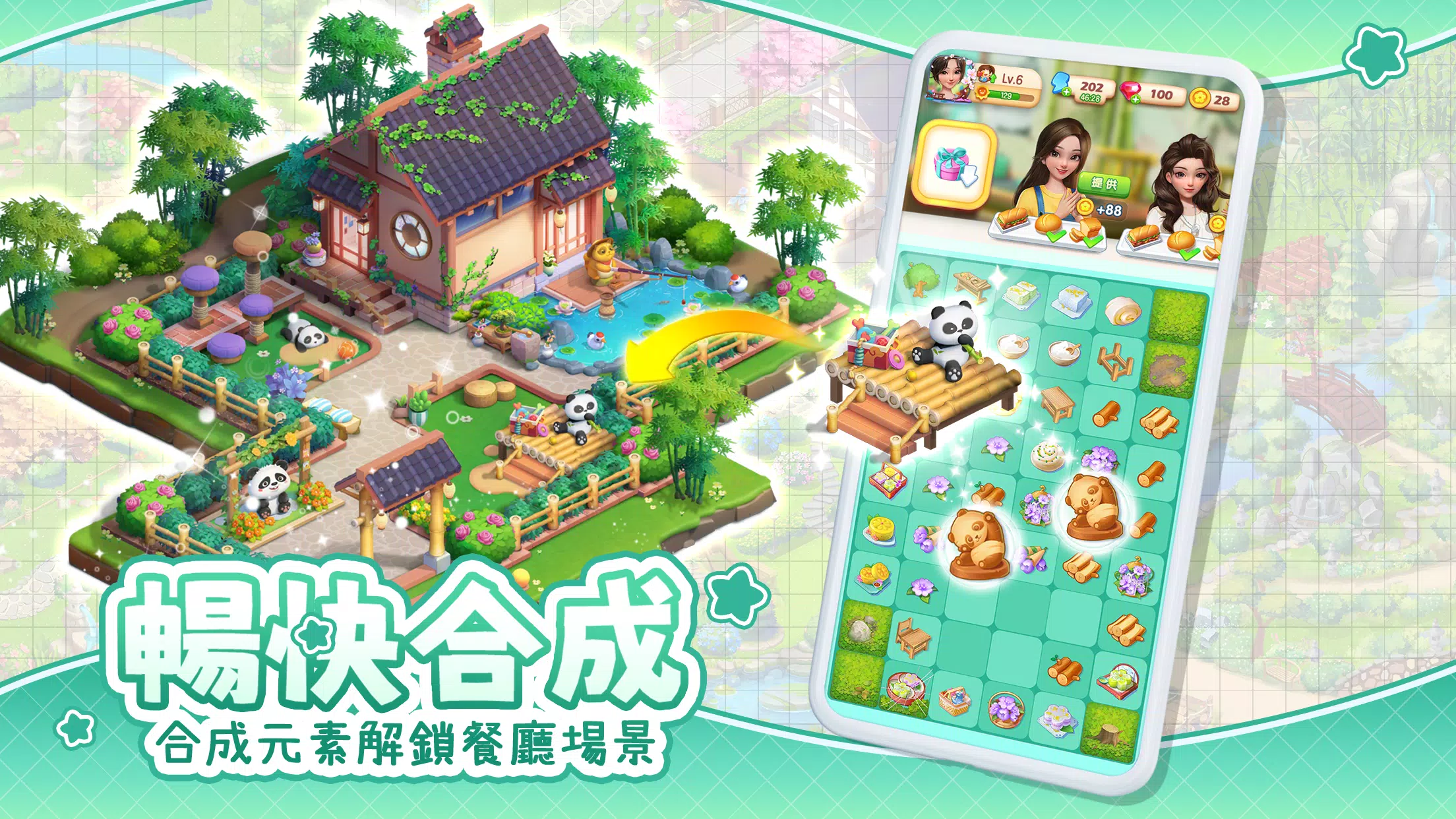 查看客人订单,合并他们需求的食品以完成客人订单,获得星币与其它奖励。