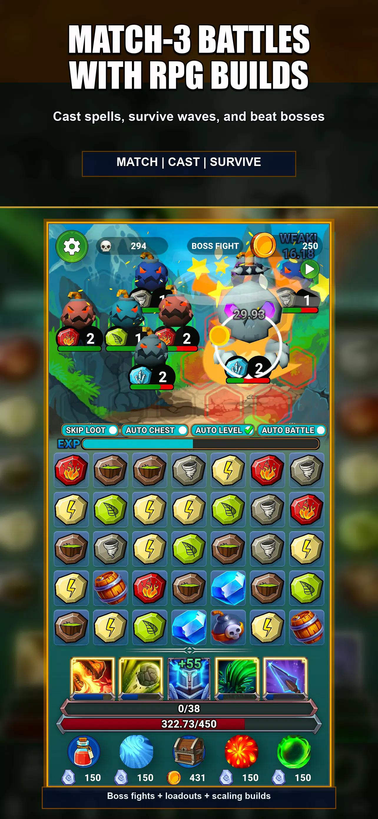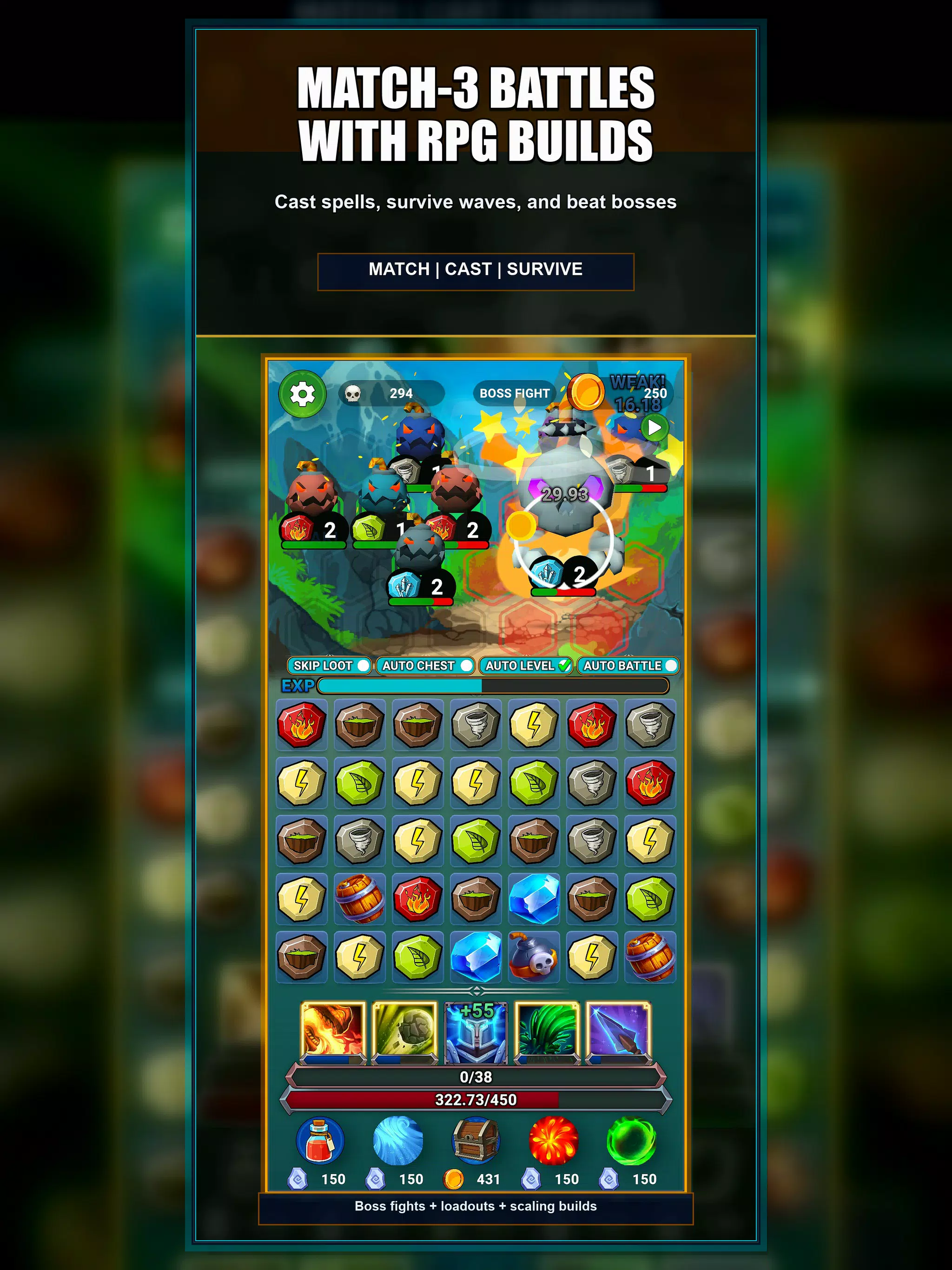消除方块。施放魔法。打造你的英雄。击败最终 Boss。