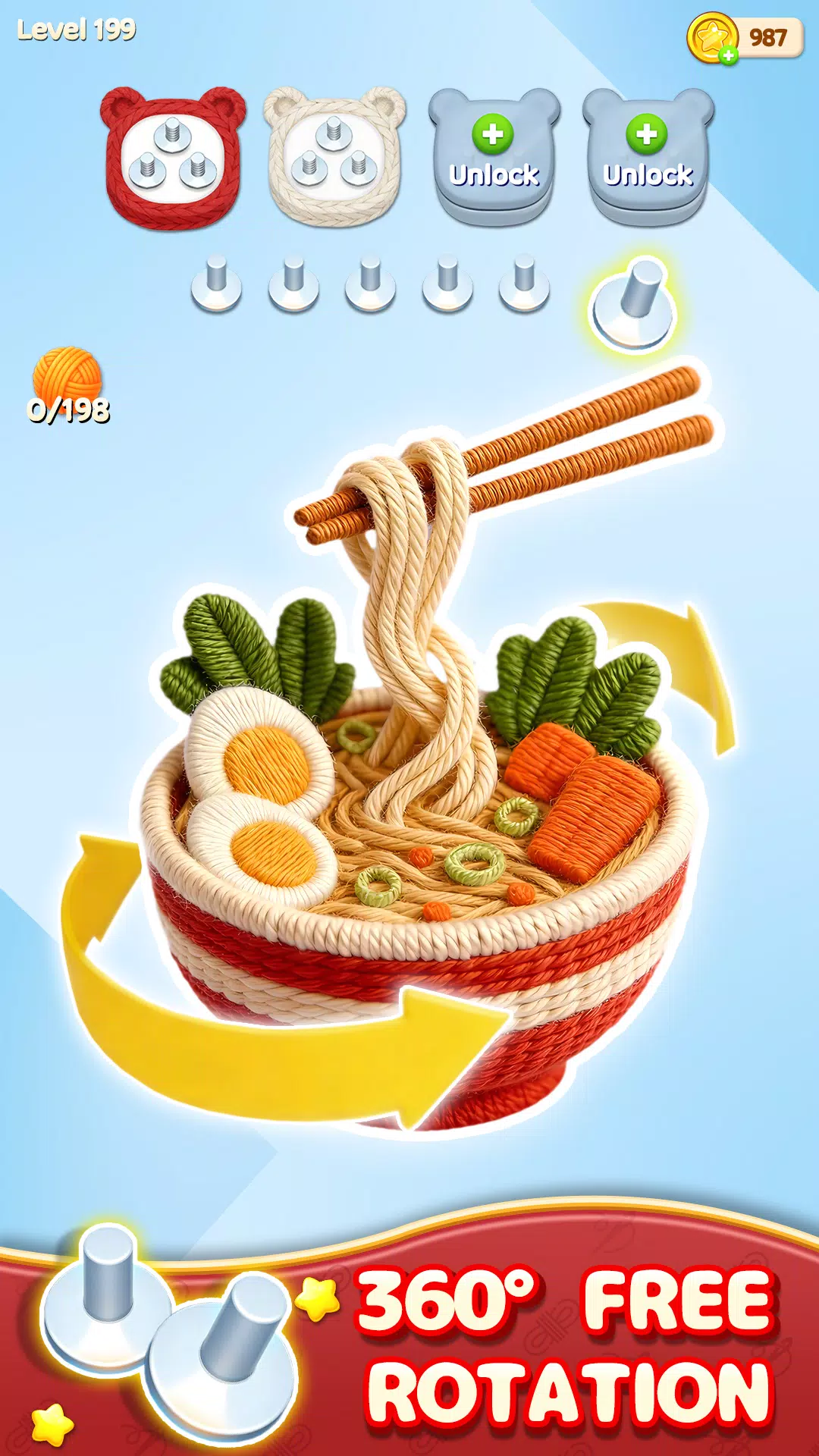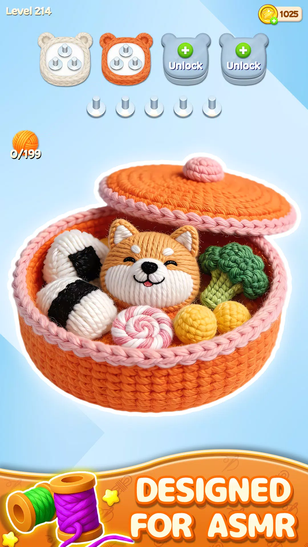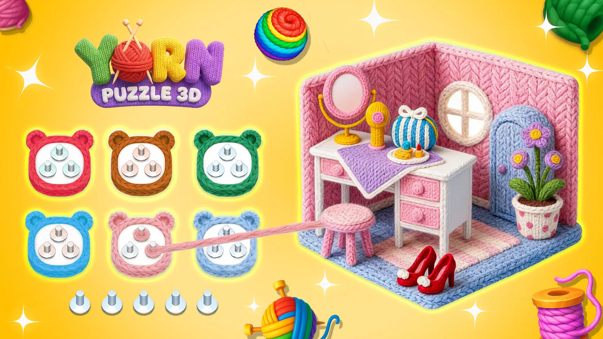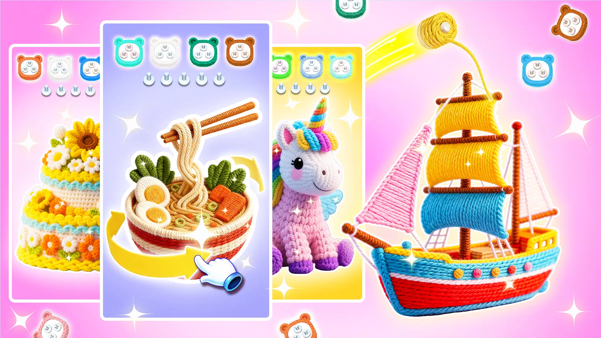 ● 难度递增:完成图案即可通关,解锁更具挑战性的 3D 毛线分类谜题。从新手成长为大师,每次成功分类都会让你倍感自豪。