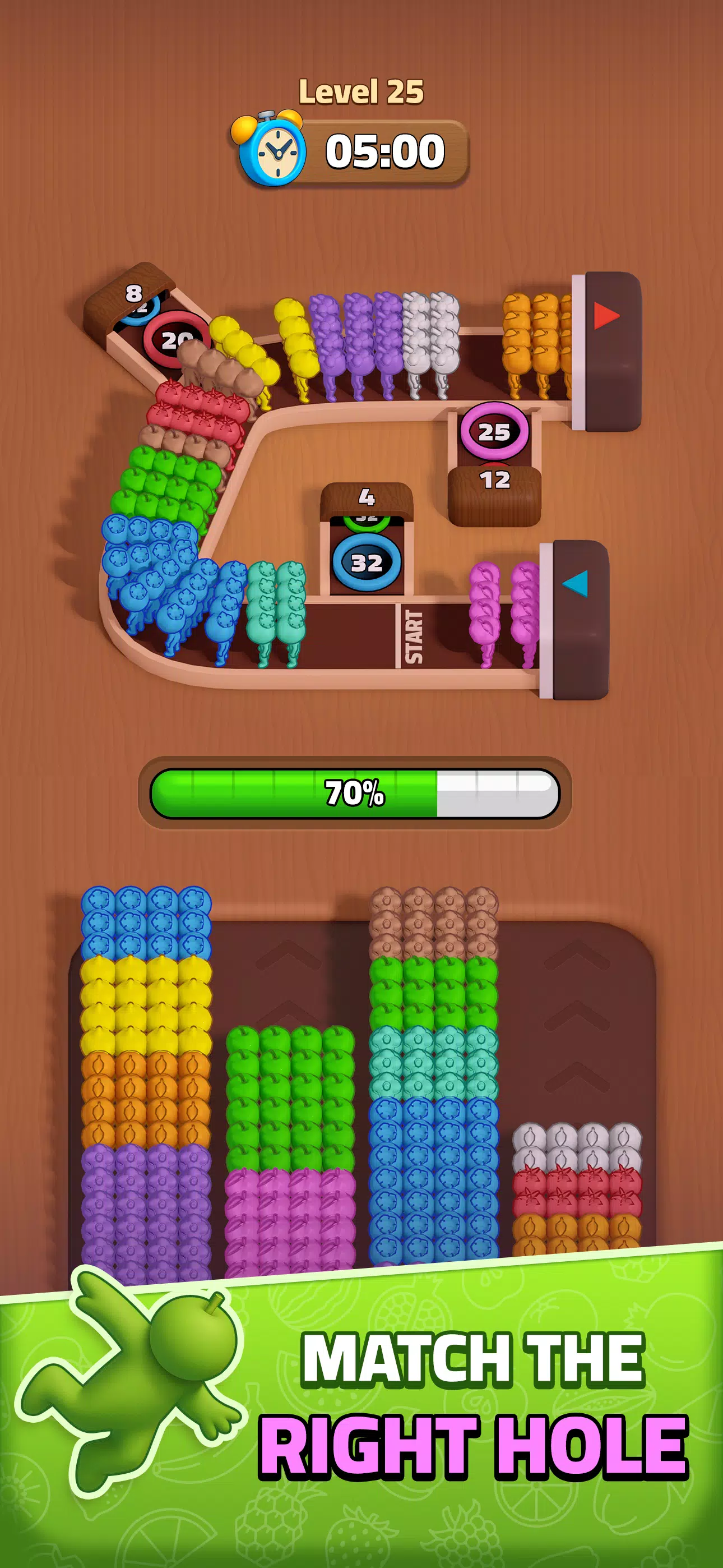 – 将小人的颜色与传送带上的孔洞颜色匹配。