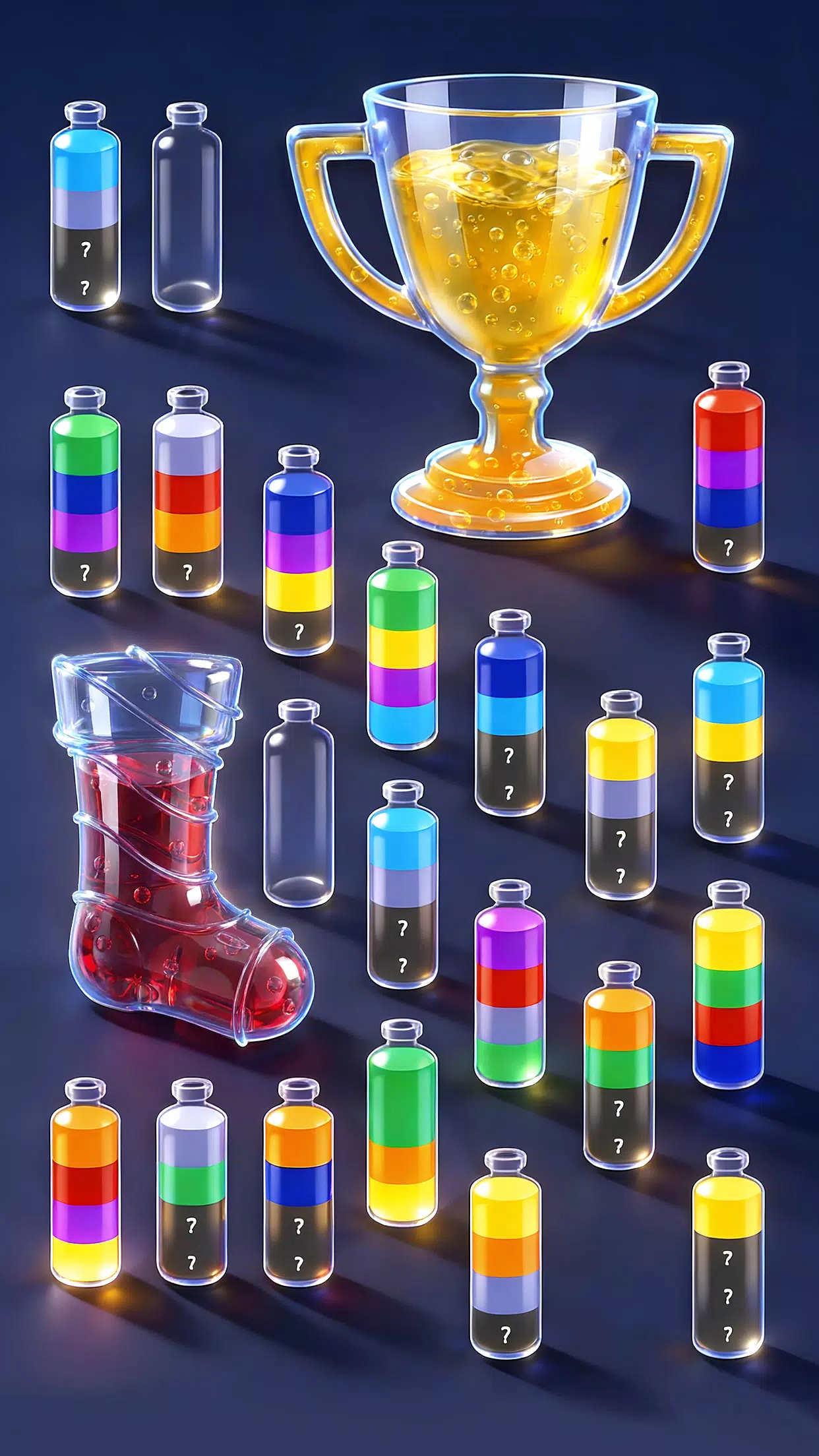 – 🍵 Delicious Bubble Tea Theme: Experience a color sort feast for the eyes with a variety of bottle sort colors, designed to draw you into a dreamy world of water games.