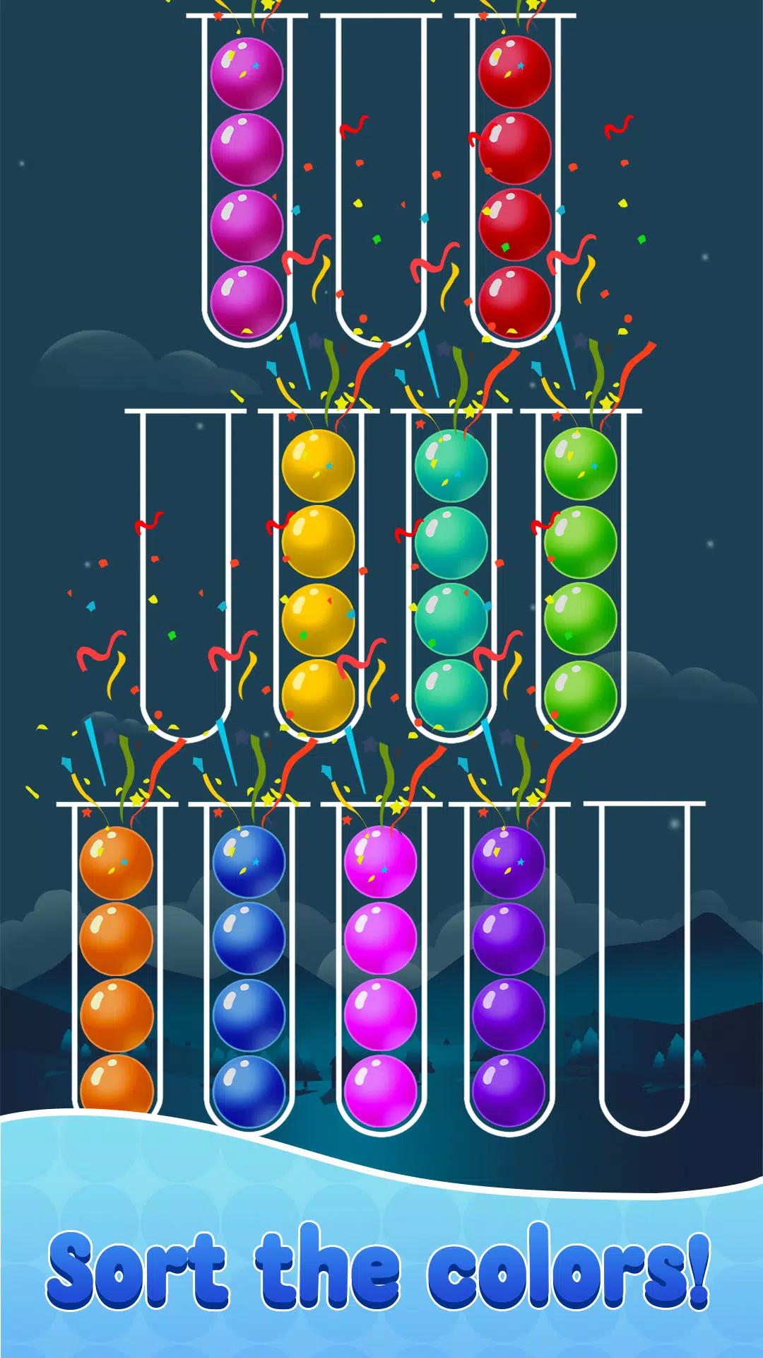 球分类拼图 – 颜色分类是一款充满乐趣和挑战性的益智游戏。你的任务是将试管中的彩色球进行分类,直到所有颜色的球都进入同一个试管。这是一款轻松又充满挑战性的游戏,可以训练你的大脑!
