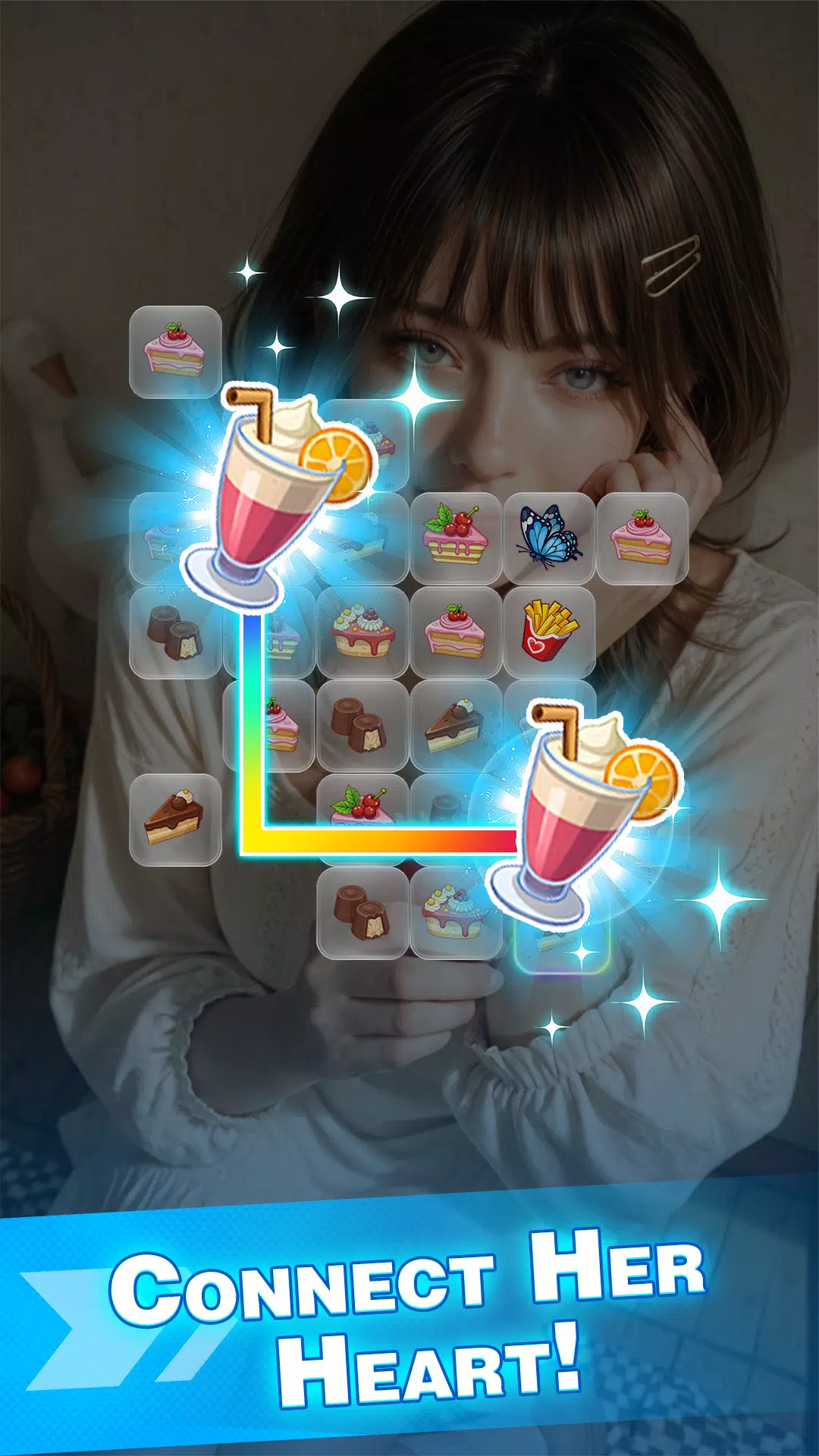 点击两个相同的方块进行连接消除,即可获得“心跳点数”奖励。连击越多,奖励越丰厚——你还能解锁更多照片内容和更具挑战性的关卡。