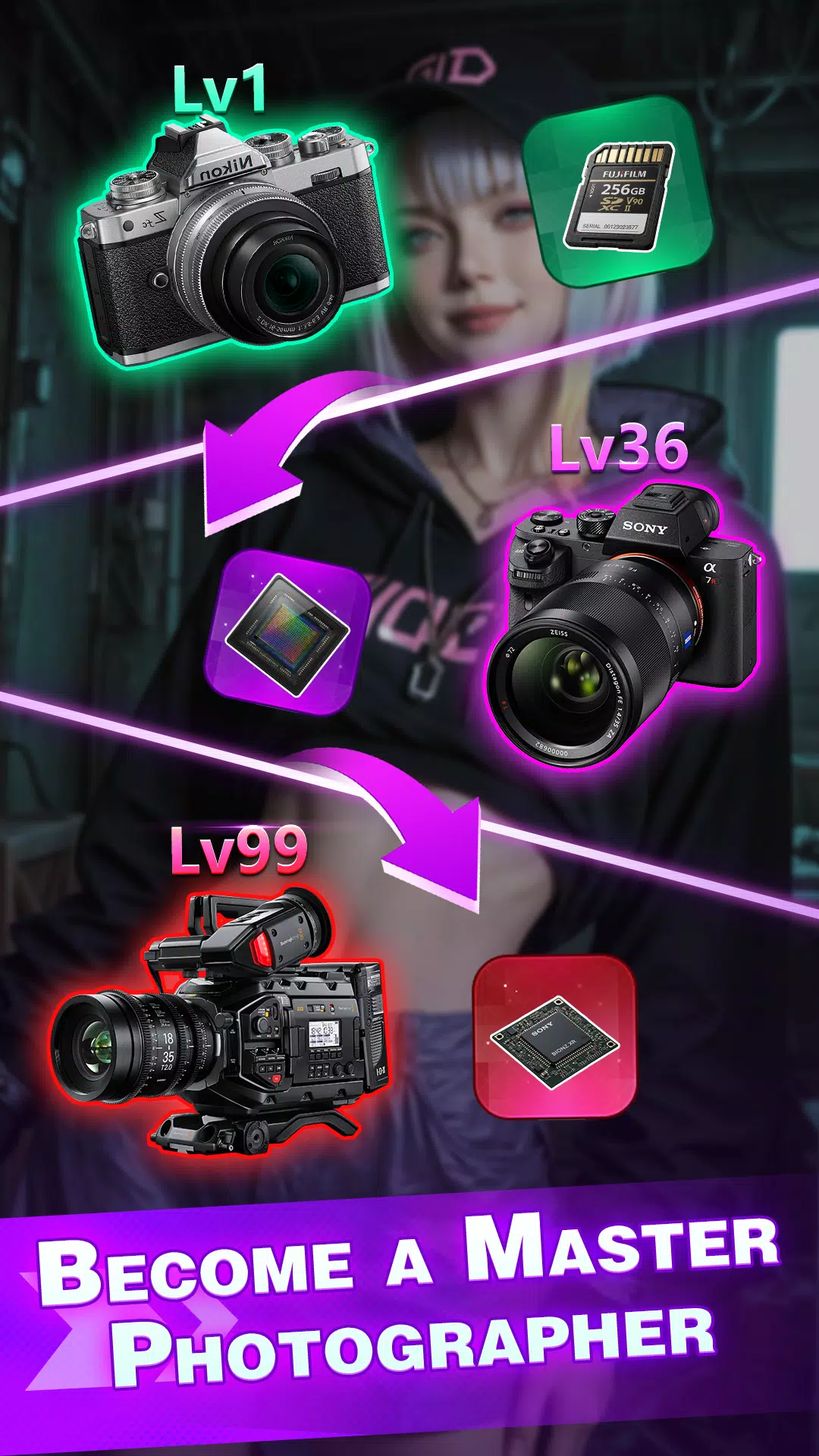 升级你的相机和配件,提升照片的清晰度和表现力。更高的等级解锁更多特殊拍摄效果,让每一次按下快门都充满期待。