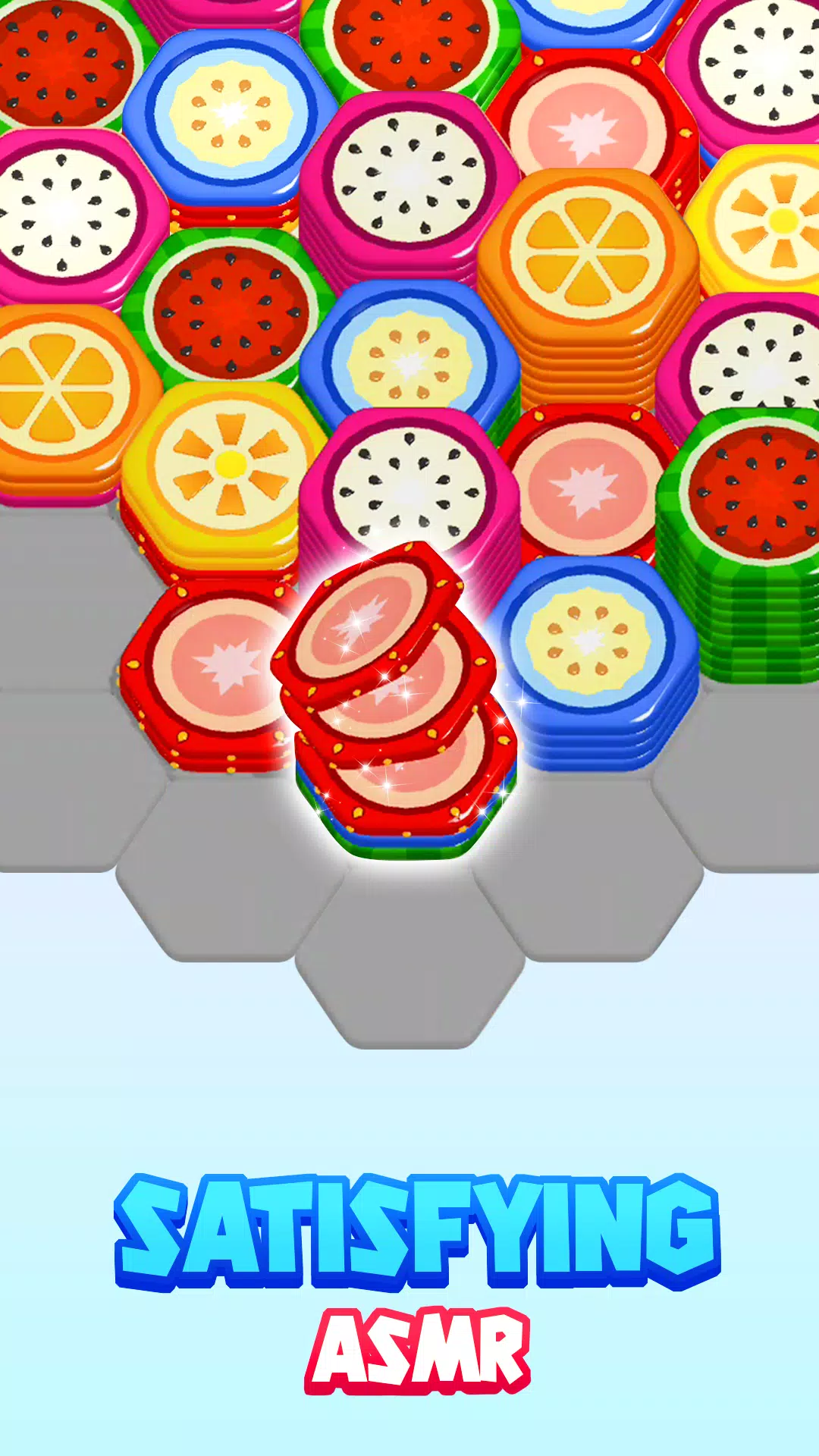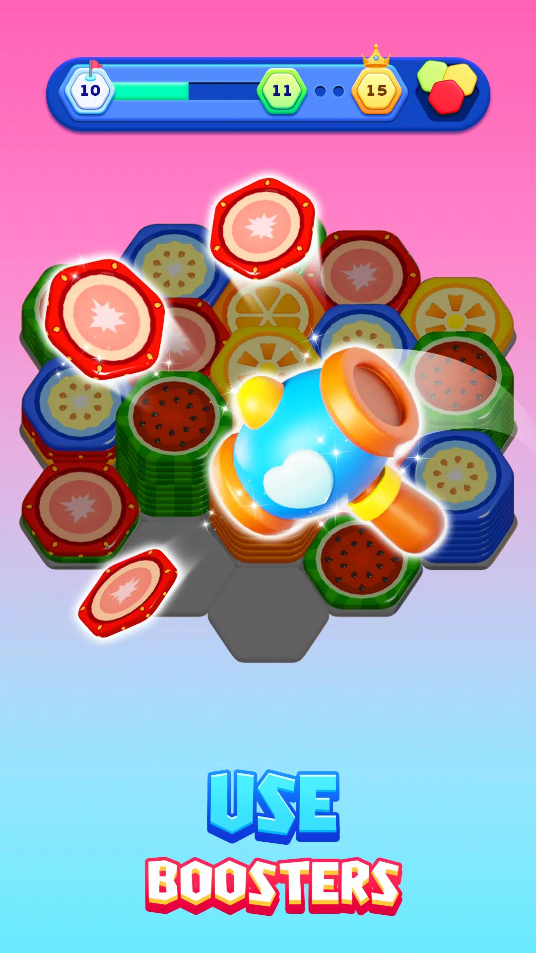 《多边形堆叠!合并》为传统的排序游戏注入了一股清新气息,邀请玩家深入探索重新排列和构建六边形方块堆叠的复杂性。为了实现水果和颜色的和谐搭配,玩家可以沉浸在切换的刺激中,并享受合并方块的宁静过程。每个关卡都设置了收集目标,为喜欢安静游戏的玩家提供刺激与减压的完美结合。