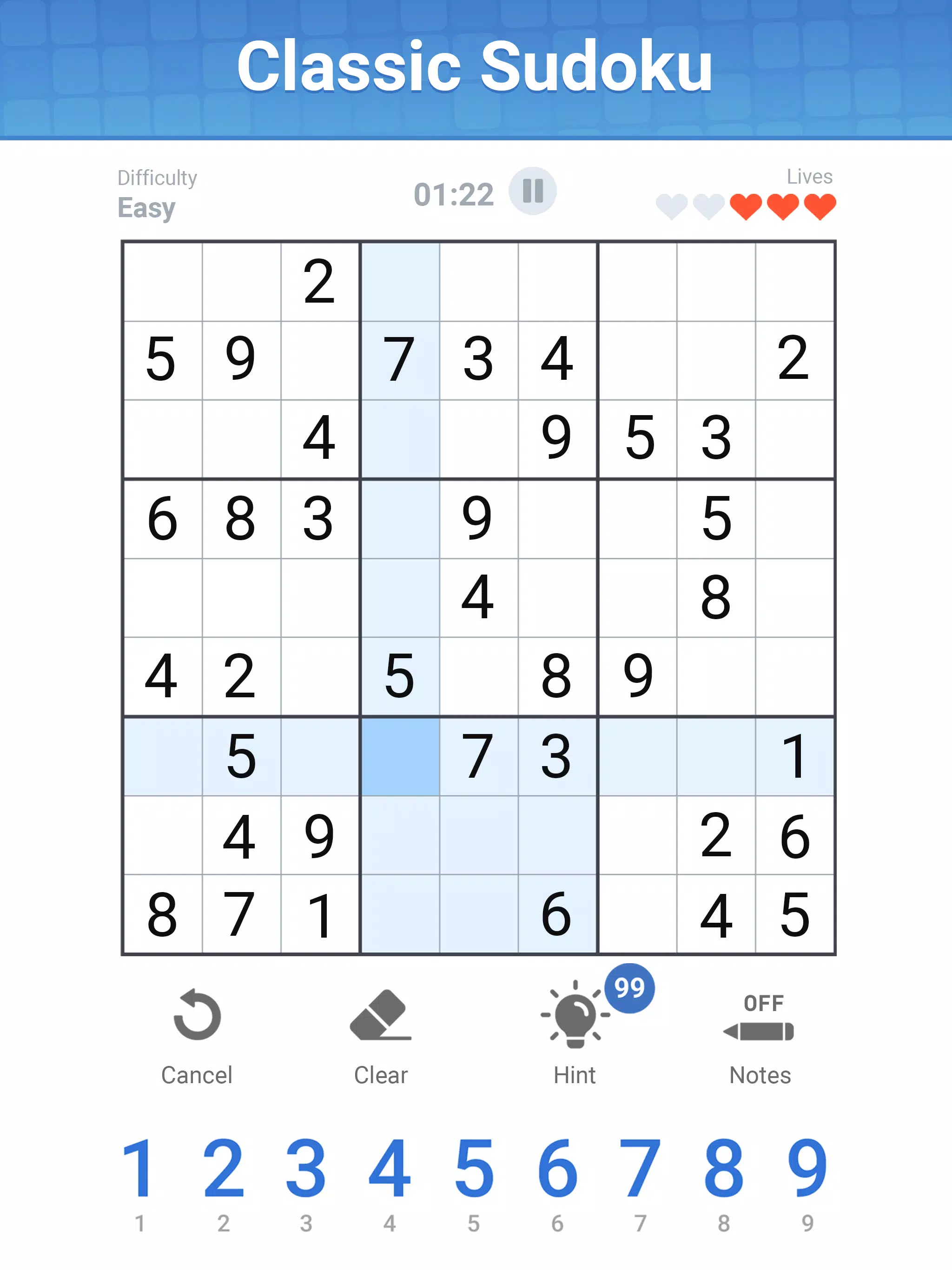 – 9×9:您熟悉且喜爱的经典数独游戏。