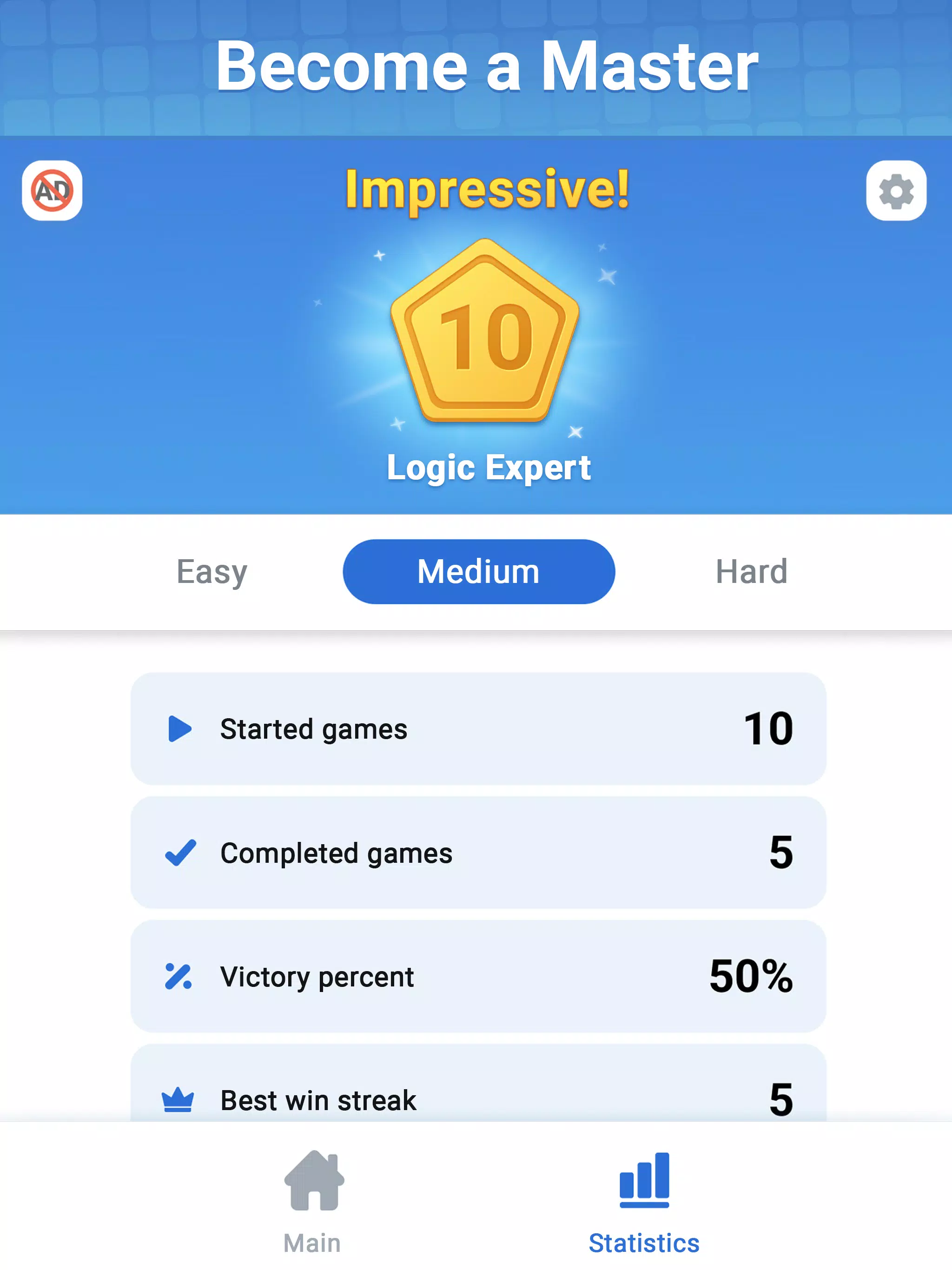 – 统计: 追踪您的胜场和个人最佳成绩。